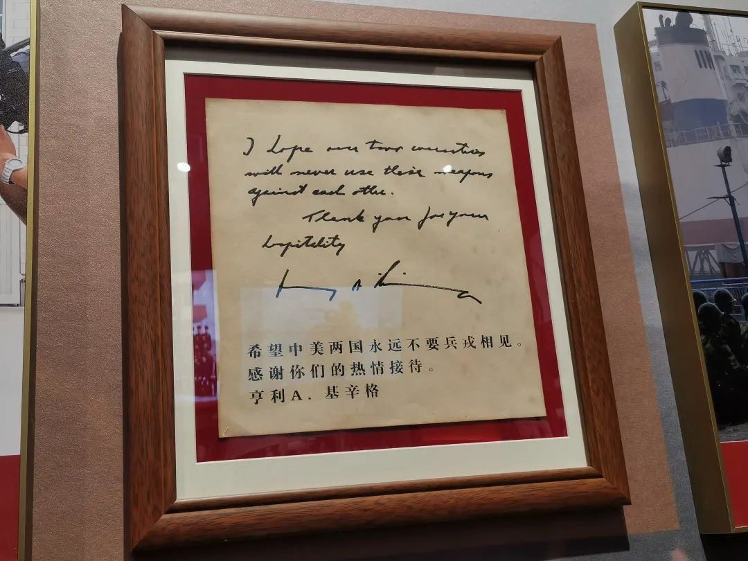 在连队认真听完介绍后,基辛格沉思良久,写下留言“希望中美两国永远不要兵戎相见”。