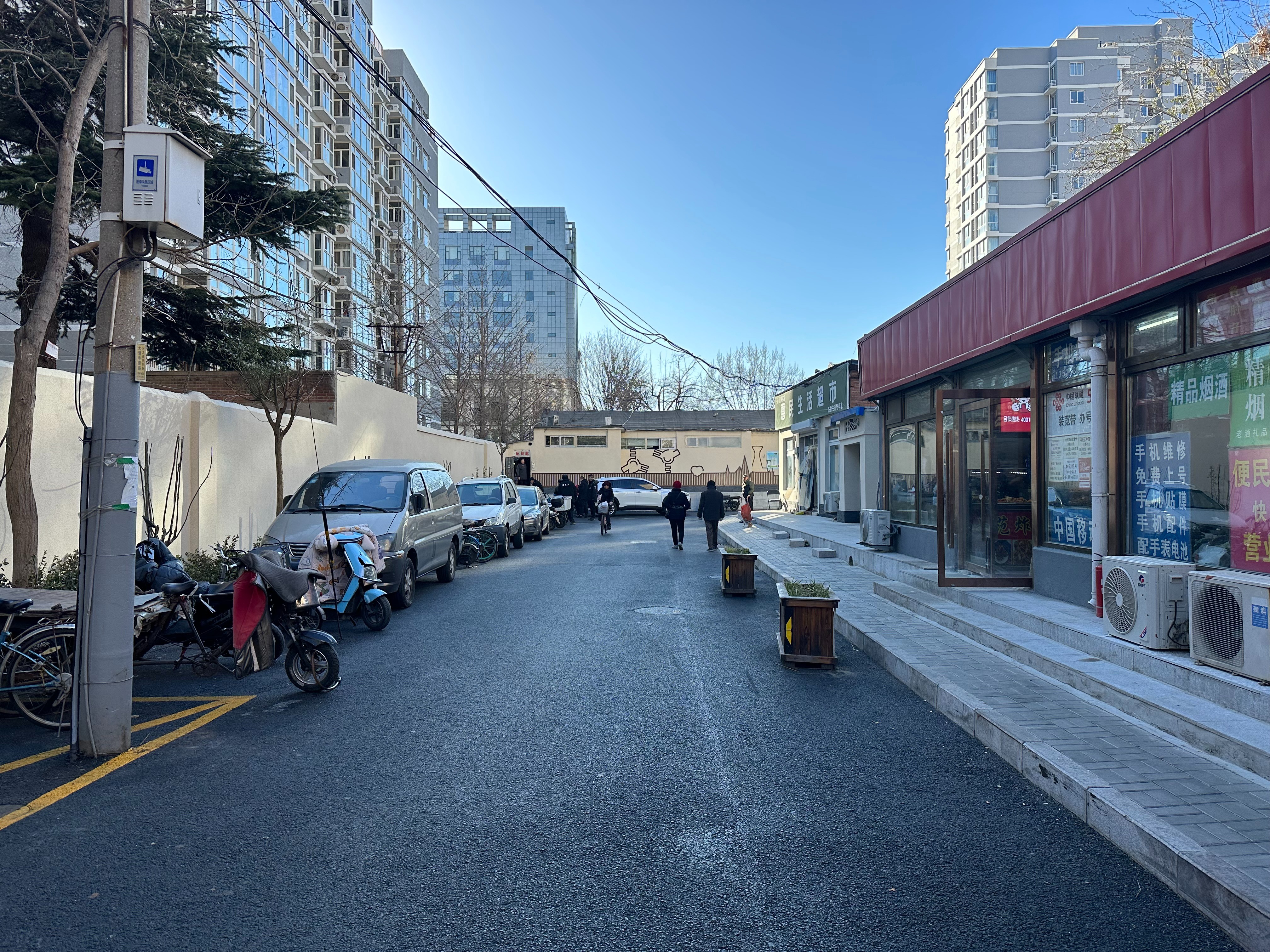 路边,清退周边店铺店外经营和乱停乱放的车辆,腾出的空间设置了2米多宽的人行步道,还布置了木箱植物景观和200多平方米的绿化区域,就连行车道也进行了沥青铺装硬化。道路两侧曾经残旧社区围墙重新粉刷,墙裙采用了仿砖设计,古朴典雅……人车分流了,环境变美了,路也不堵了,大慧寺南路街区环境得到显著提升。