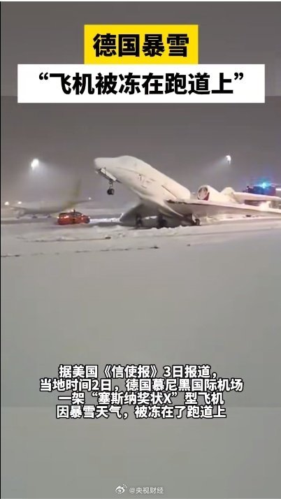 当地时间12月2日,德国慕尼黑国际机场一架“塞斯纳奖状X”型飞机因暴雪天气被冻在了跑道上。另据有关报道,慕尼黑国际机场至少有760个航班因降雪而取消,数以千计的旅客被迫滞留。