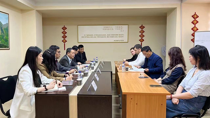 为深化对“一带一路”民心相通领域的理解,调研团前往乌兹别克斯坦塔什干国立东方大学孔子学院开展调研。中方院长杨士虎及全体教师、志愿者共同参与座谈,双方就中乌两国民间文化交流、北京-塔什干友好城市建设、“一带一路”沿线留学生互访等议题开展深度交流会谈。