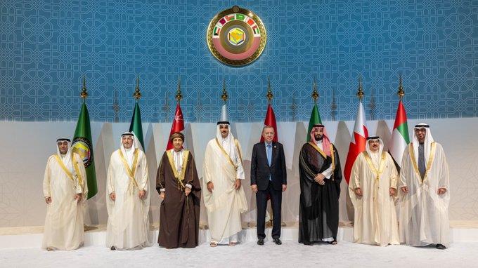 当地时间5日,第44届海湾阿拉伯国家合作委员会(海合会)首脑会议在卡塔尔首都多哈举行,卡塔尔、沙特、阿联酋、阿曼、巴林、科威特6国领导人以及土耳其总统埃尔多安出席了此次会议。