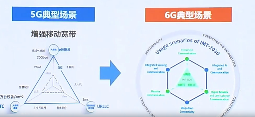 6G推进组组长 中国信息通信研究院副院长 王志勤:6G提出了三个新的场景,通信和感知的结合以及通信和人工智能的结合,还有类似于泛在物联,实际上就是现在比较热门的天地融合这种场景。未来6G要连接的对象不光是人,还有很多的智能体,比如机器人、元宇宙。现在大家认为5G可能在行业还不好解决的一些场景可能会进一步完善。