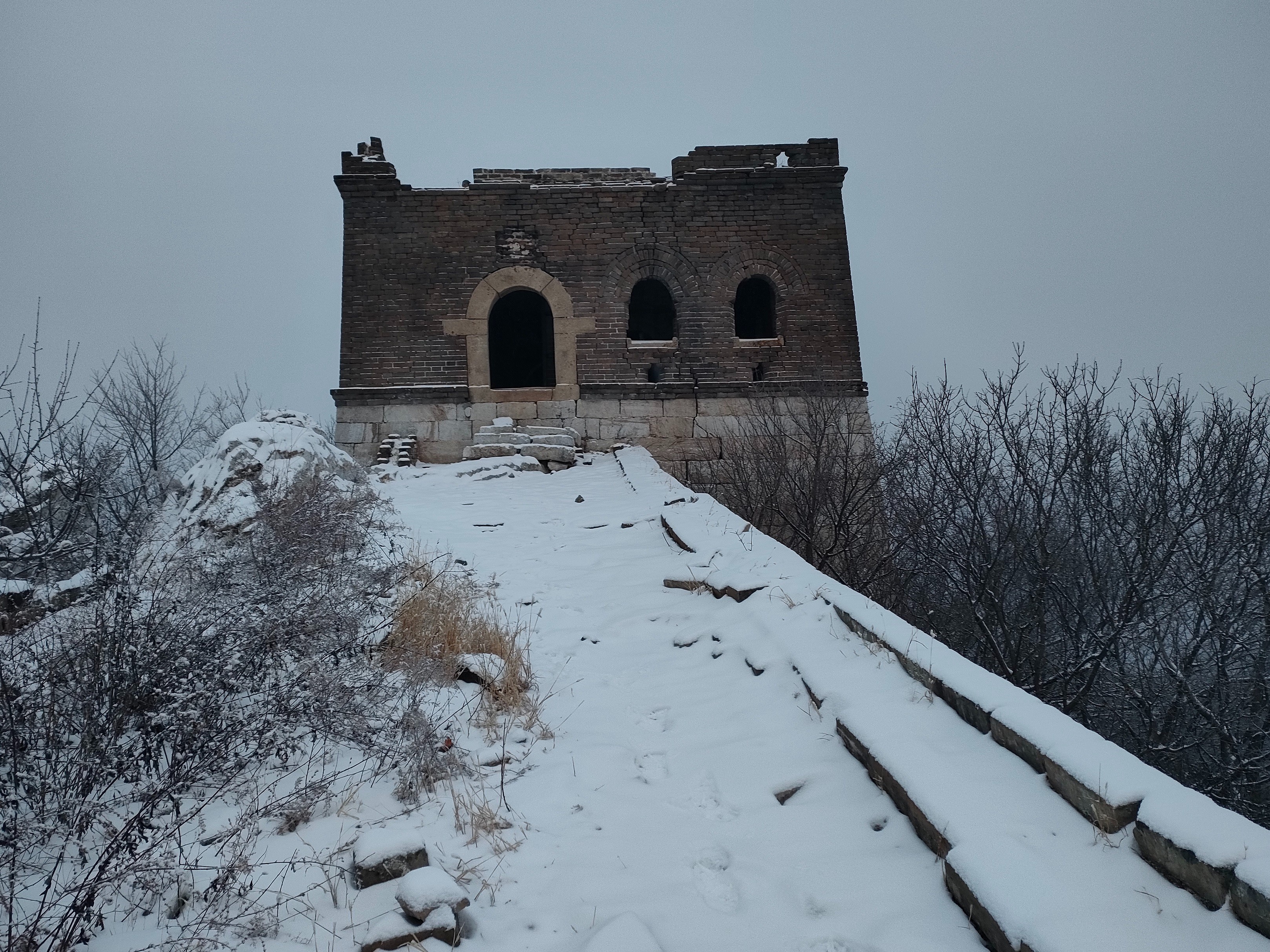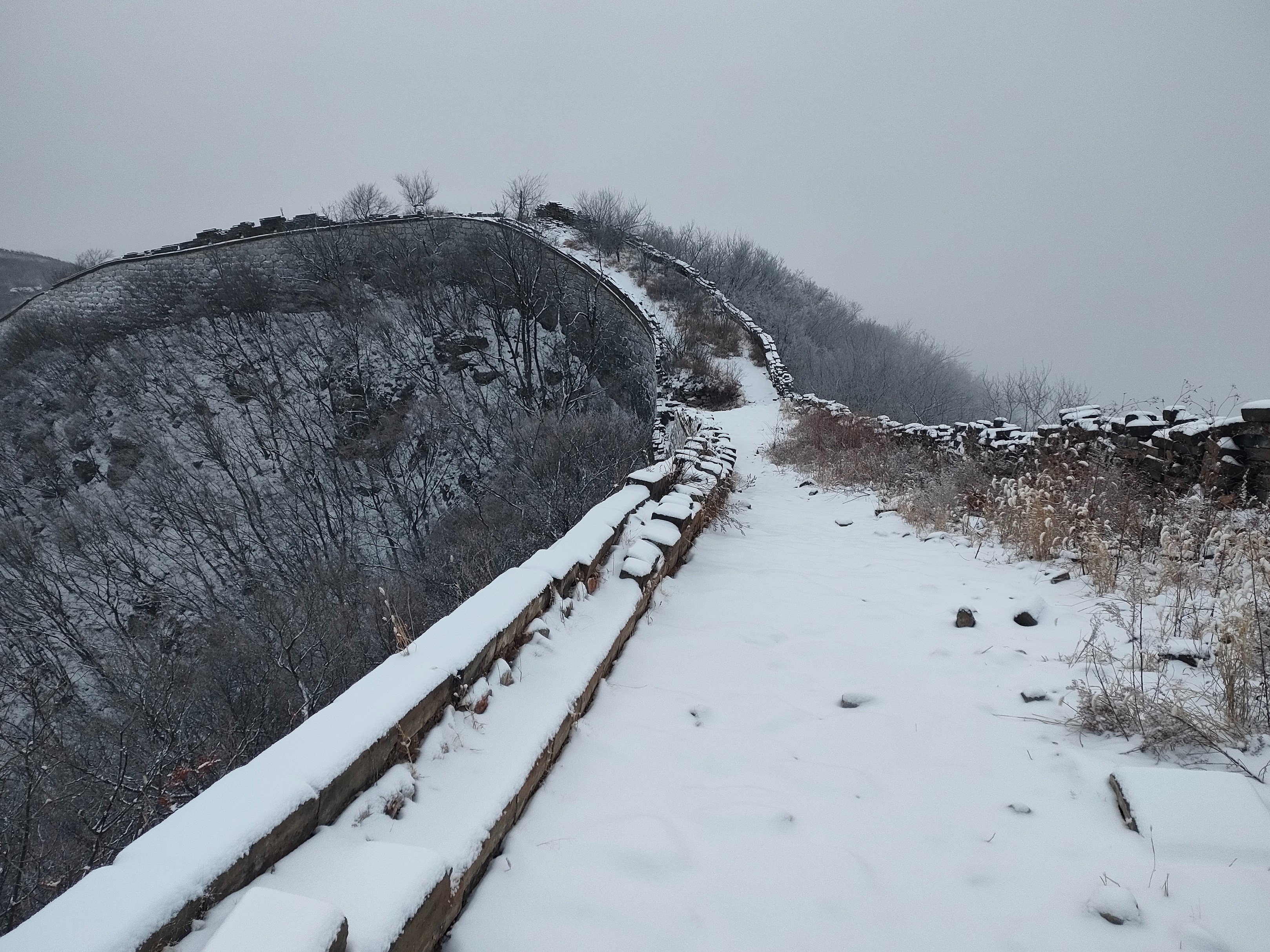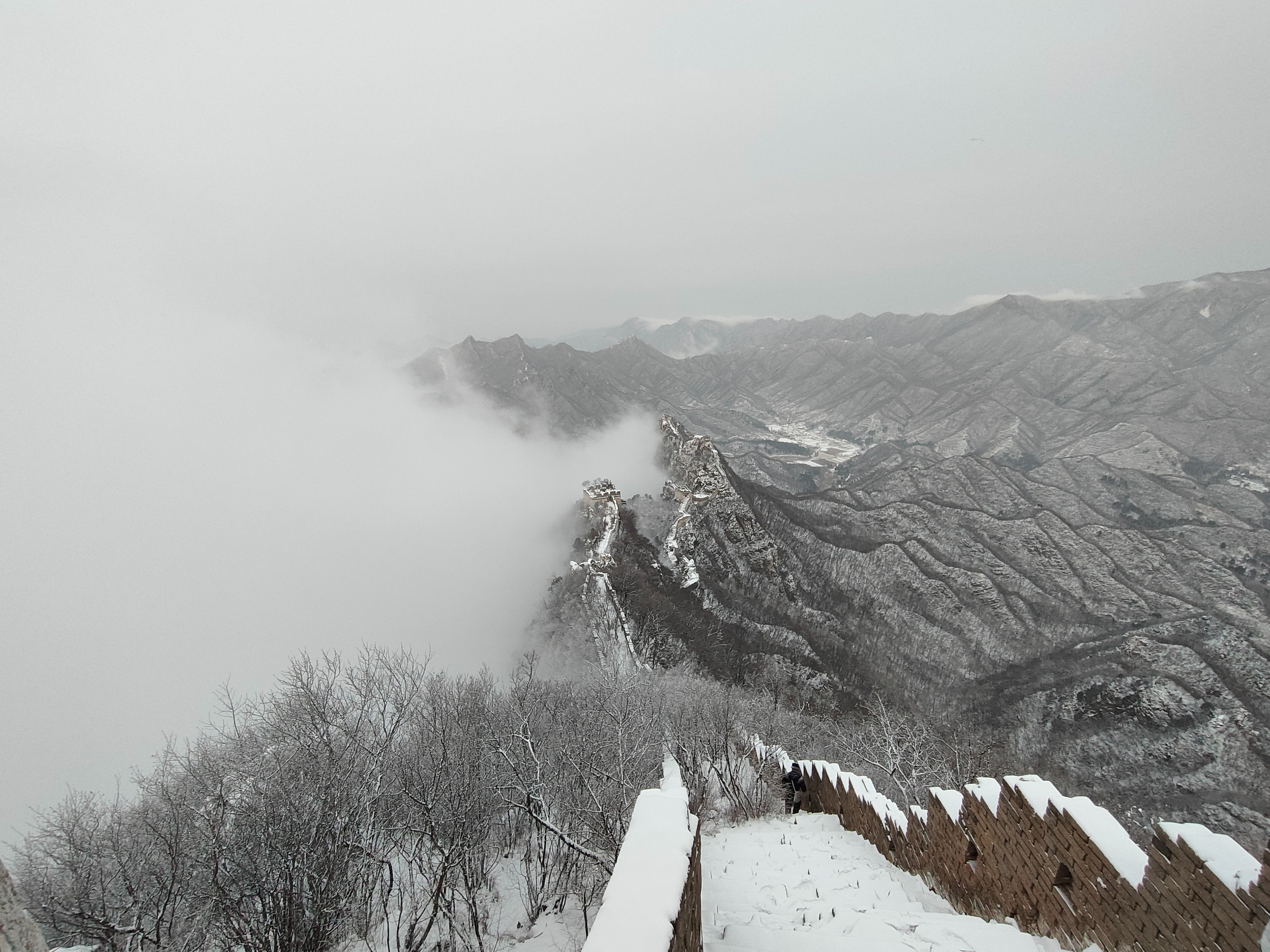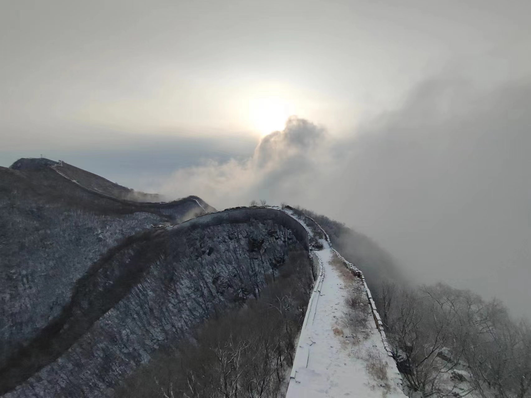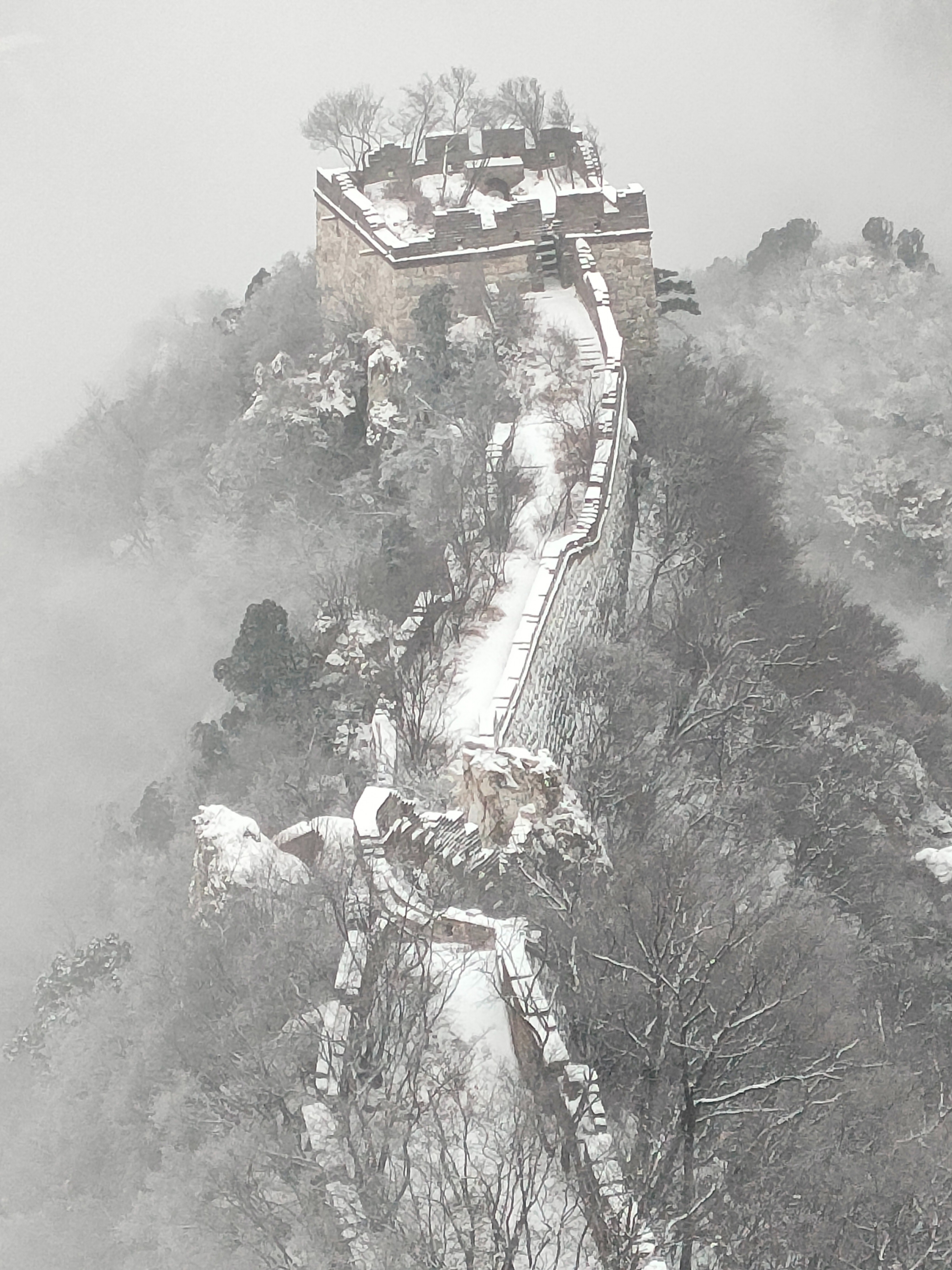 北京迎来今冬首场降雪。今早五点,怀柔区雁栖镇西栅子村的长城专职保护员赫金悦迫不及待地从山脚下出发,背着相机、摸黑爬上了箭扣长城,在天光蒙蒙亮时抵达正北楼,拍下了万里长城雪后的壮阔美景。