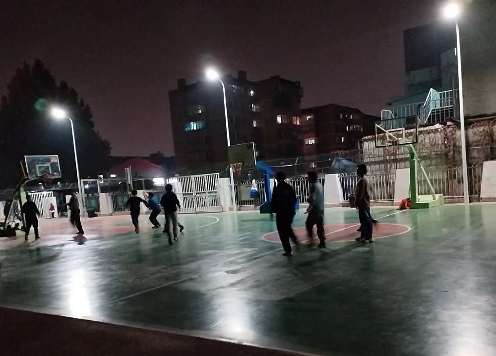 傍晚7时许,天已经黑透。房山区良乡三小校园操场上,却时而传来“砰砰”的拍球声。篮球架下,中年人小试身手,年轻人你争我抢……当孩子们放学离开,闲下来的校园操场亮起灯,继续为周边居民提供健身空间。
