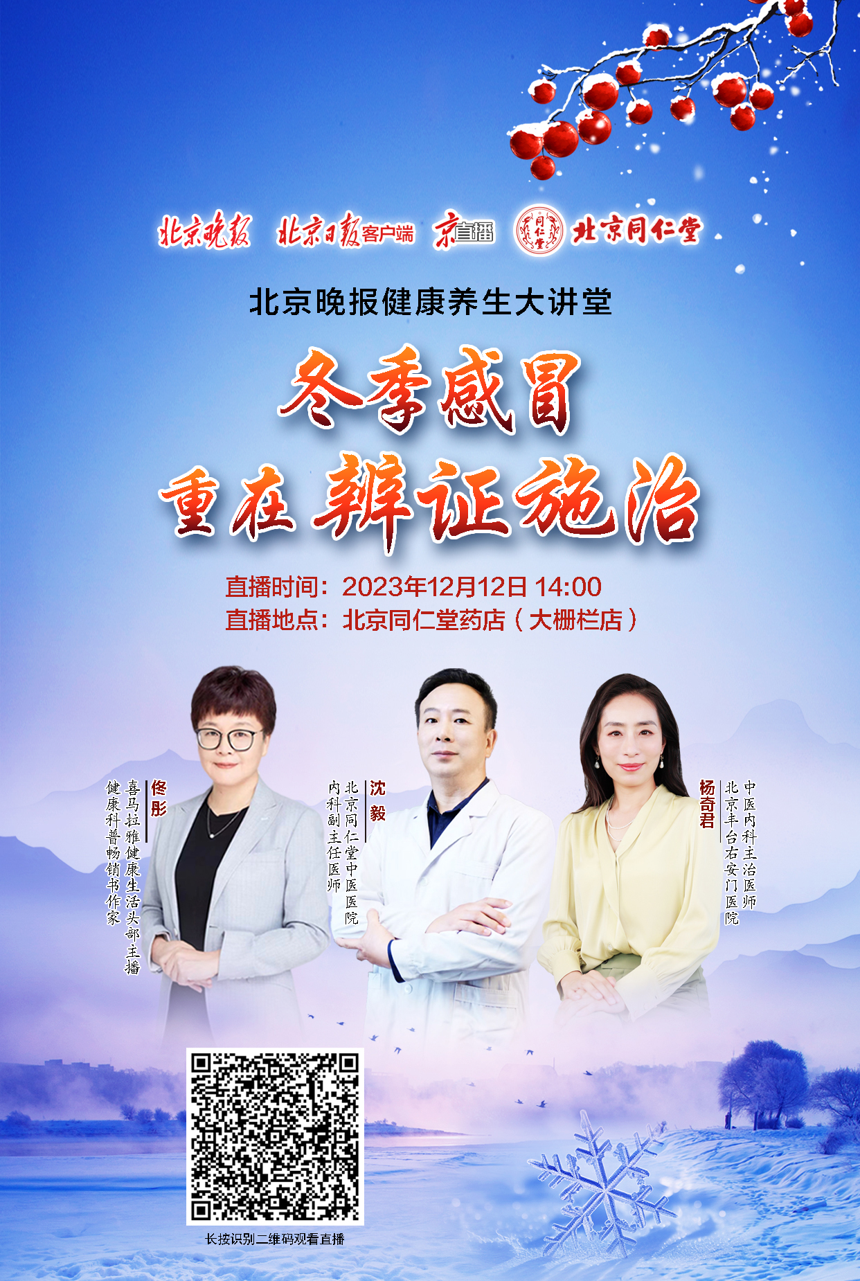 今年,健康养生大讲堂焕新升级,继续陪伴大家一起关注生活中那些不可忽视的健康问题。面对今冬感冒、流感、支原体感染等呼吸道疾病流行的情况,为帮助大众更好地学会防治疾病的健康知识,北京晚报将携手北京同仁堂科技发展集团,共同举办“中医药助力冬季常见病防治”系列活动,走进北京地区多家同仁堂药店及校园等更多场景,创造专家与百姓面对面交流答疑的机会。该活动将同步在北京日报客户端京直播平台进行直播,通过线上传播惠及更多民众。