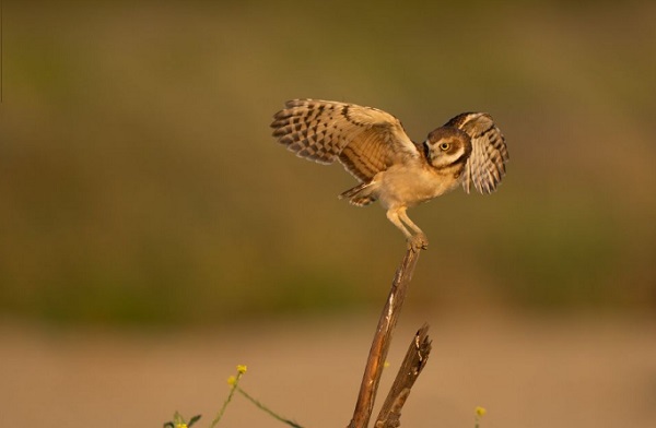 2019年6月13日,在美国加利福尼亚州安大略机场附近,一只幼小的猫头鹰练习飞翔。图源:新华社