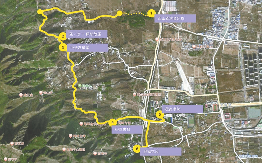 这条9公里长的小道,串起了西山森林音乐谷、圣-琼·佩斯故居、中法友谊亭、鹫峰秀峰寺、敬德书院和贝家花园6个中法文化交流代表性点位。