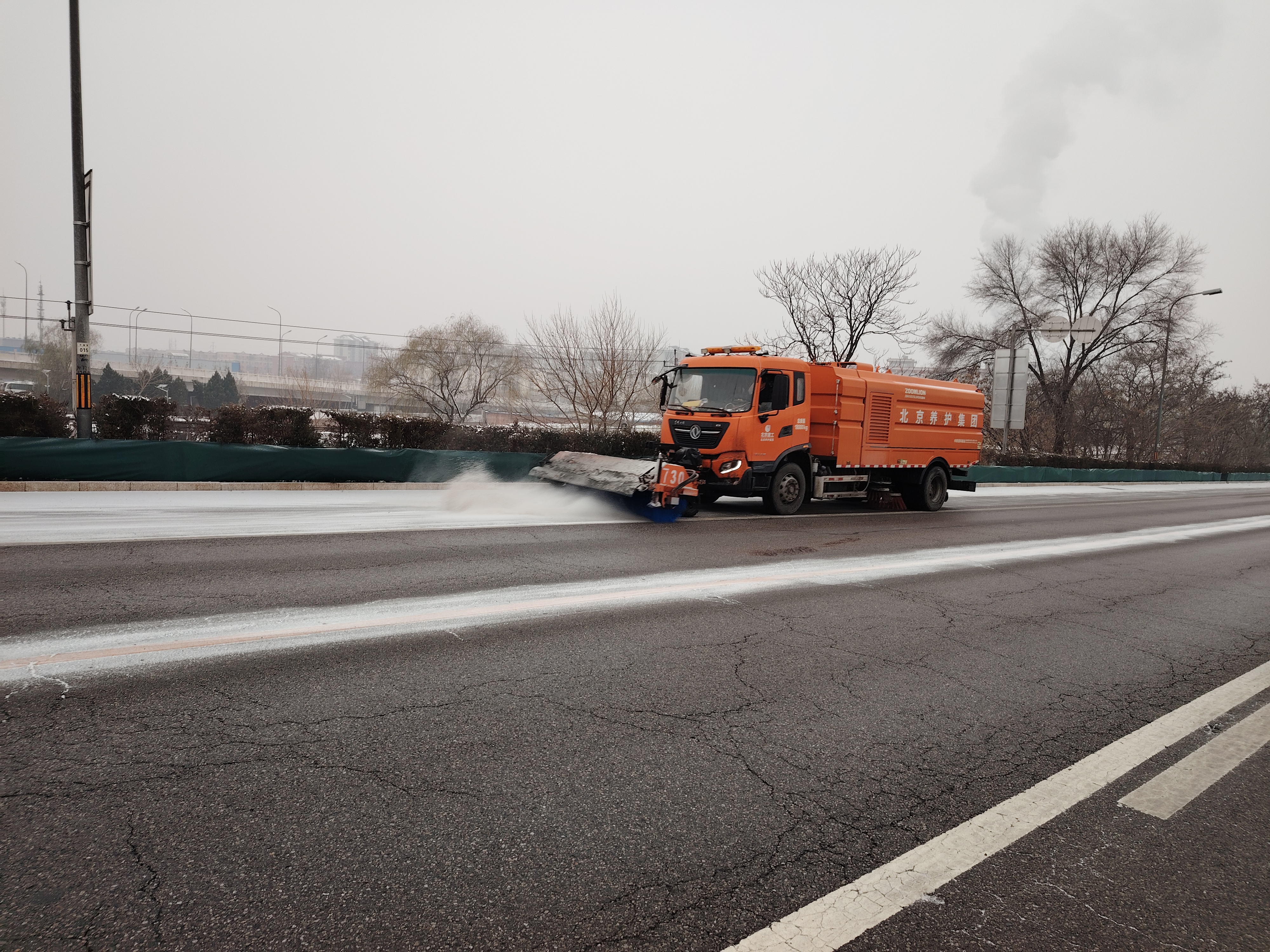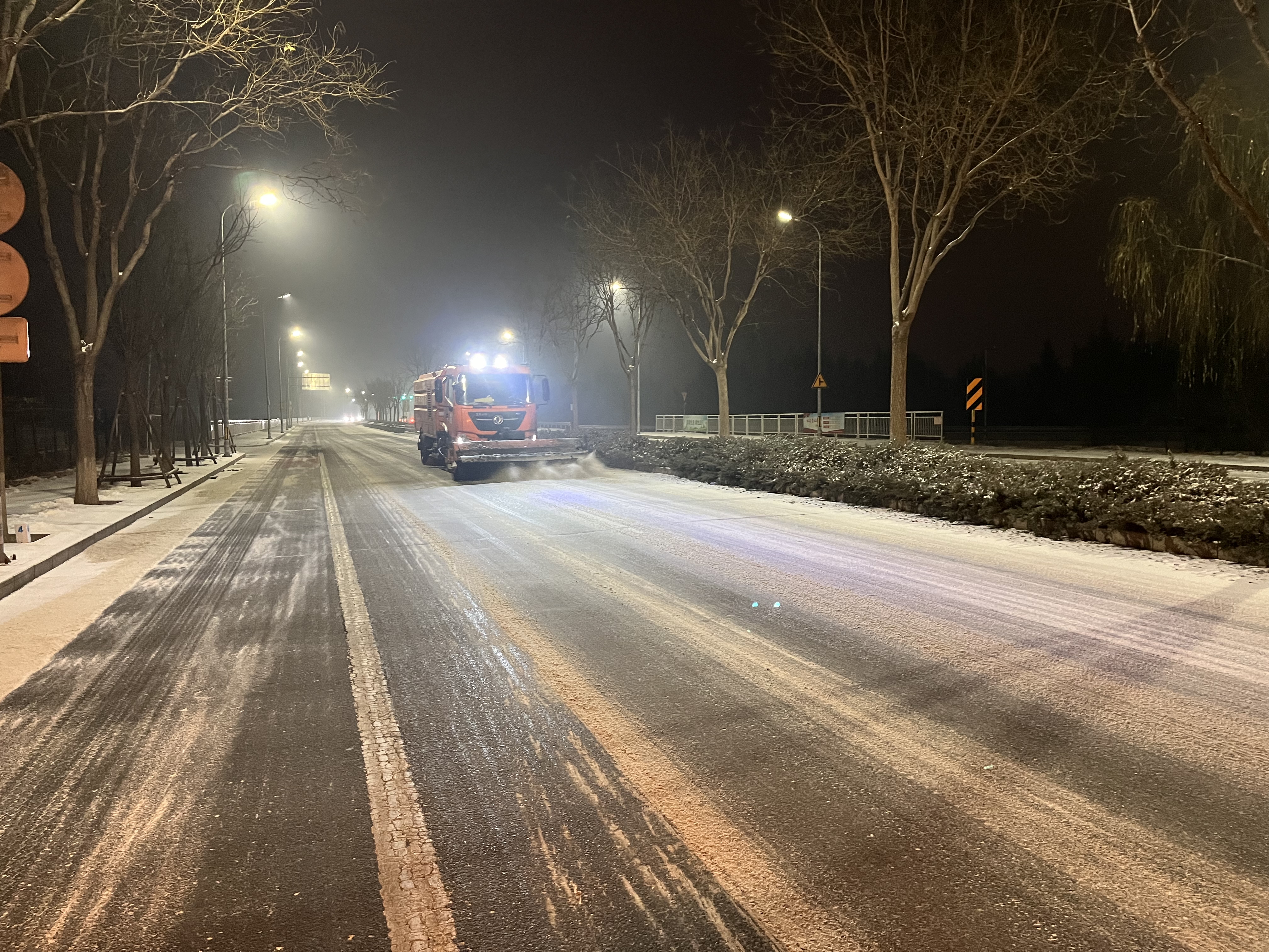 为预防道路结冰,12日傍晚开始提前对京漠线、安四路、台关路、怀黄路、范崎路、天北路北延、北台路、茶良路等路段的弯道、陡坡、背阴路段、隧道出入口、长大桥梁开展融雪剂预撒工作,撒布融雪剂63吨,防止夜间道路结冰。