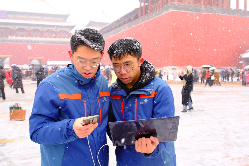 大雪天也给一线工作人员的测试工作带来了困难。“刚到故宫没多久,头上就结了冰,下雪天地面也非常湿滑,摔我可以,别摔了测试设备。”于典笑着说,看着游客们笑意满满地在现场拍照片、拍视频,他和同事觉得干活也有了动力。