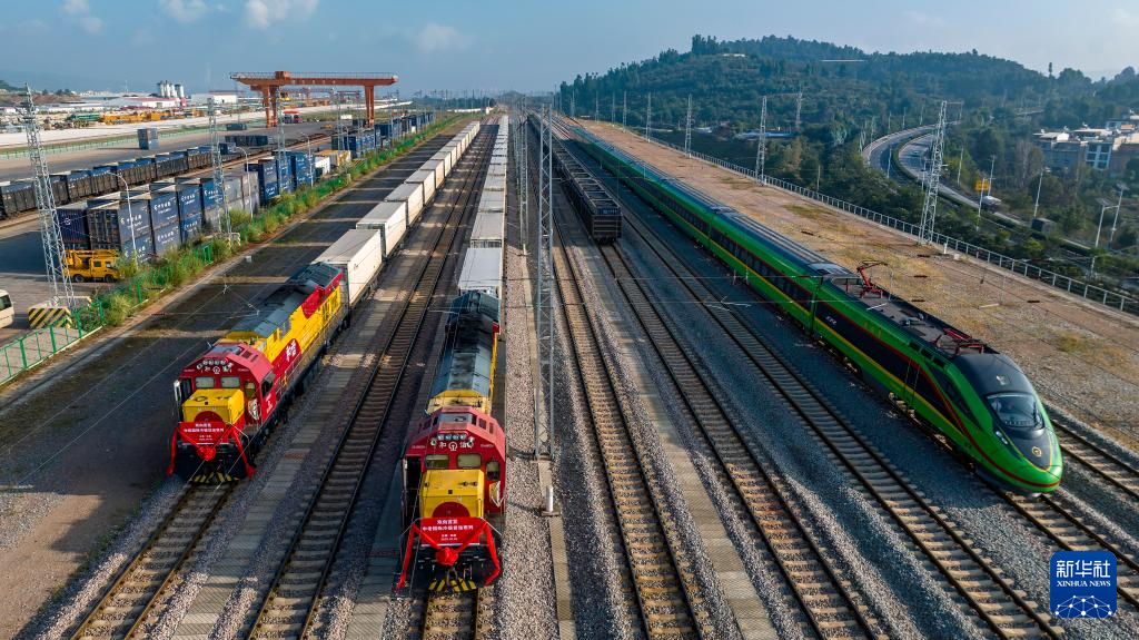 10月16日,中老、中越铁路国际冷链货运班列正式开通运营。 新华社发