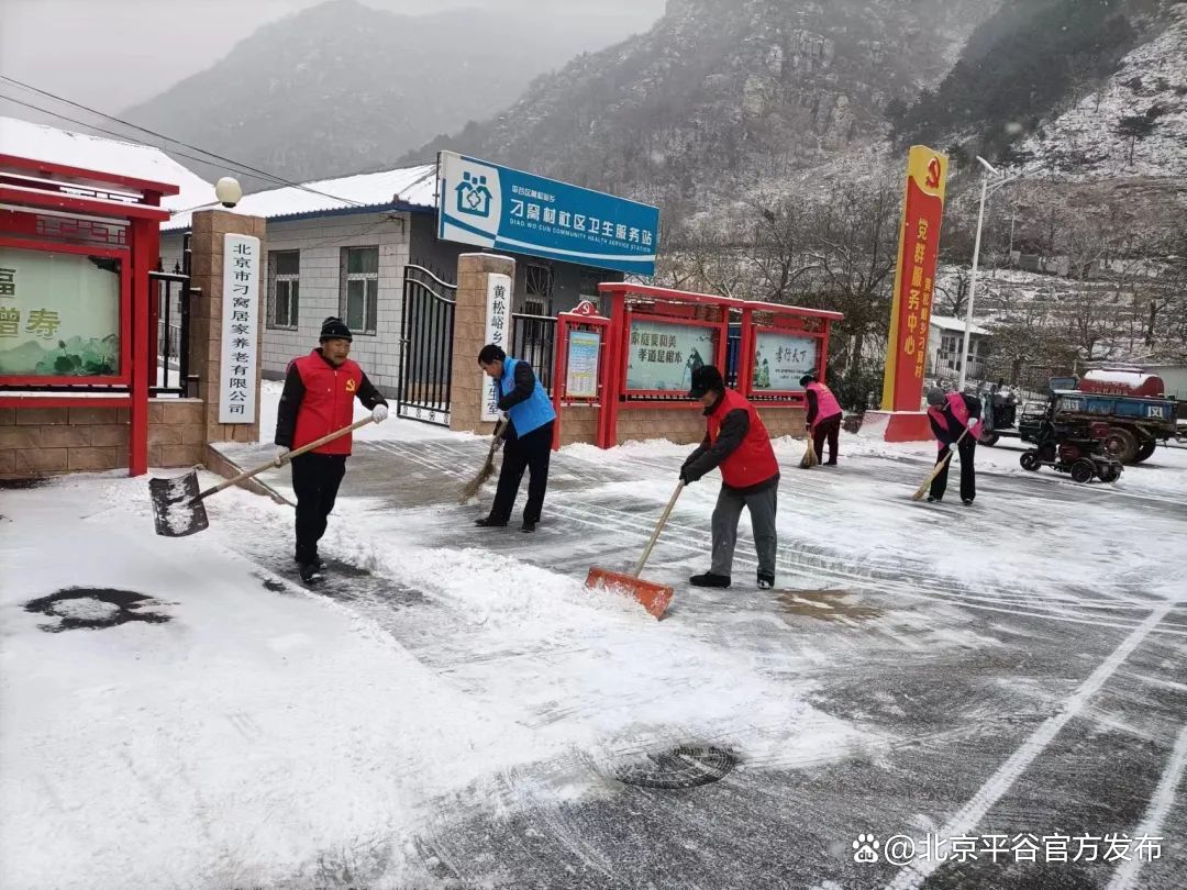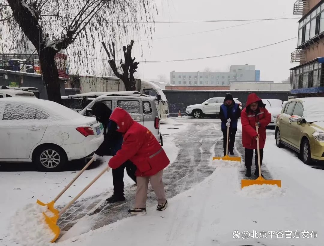 平谷镇全员行动、用心保障,组织党员、网格员、物业、热心群众等开展扫雪铲冰活动,用实际行动为群众出行安全保驾护航。