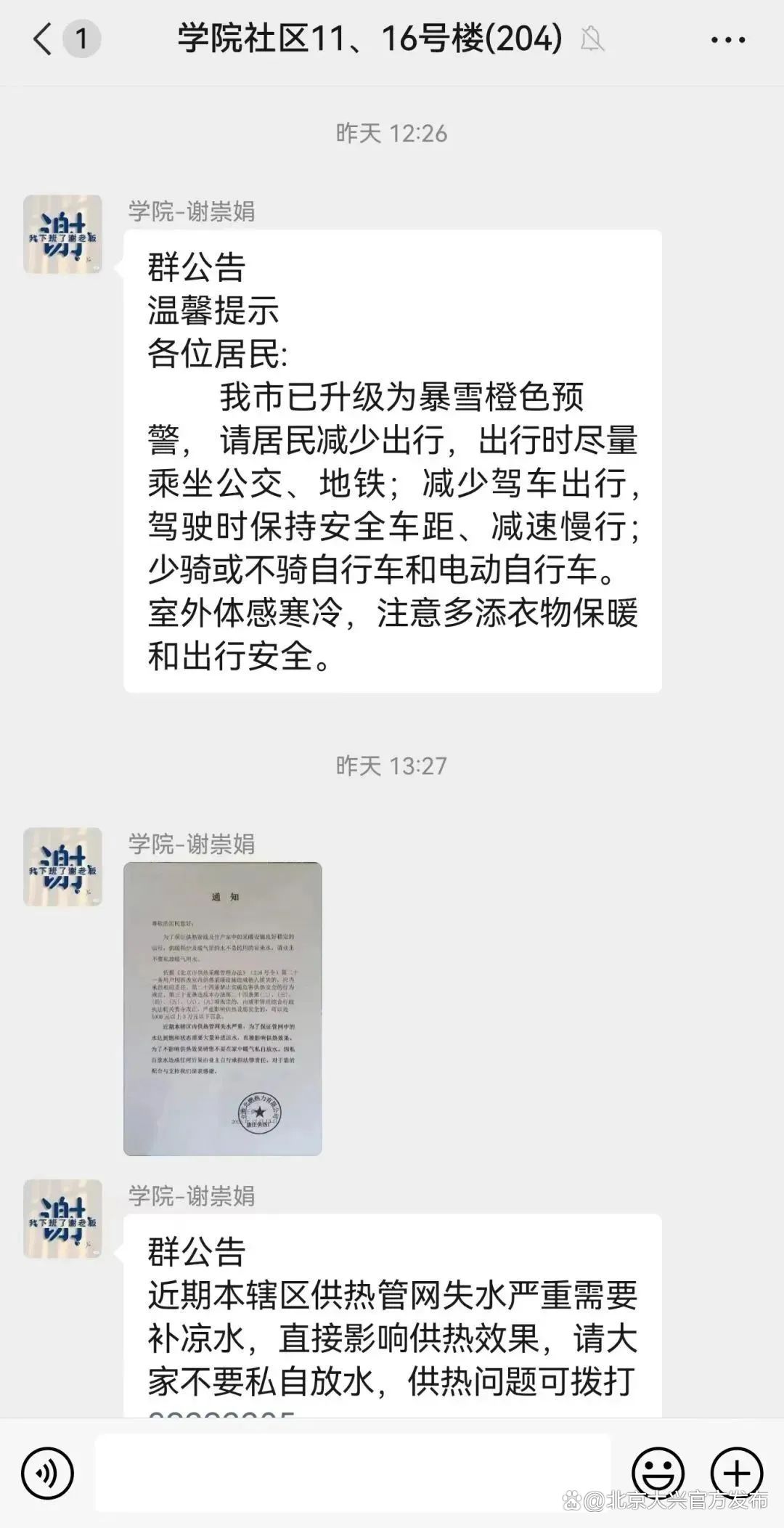为扩大安全提示宣传,提高老年群体防范意识,各社区充分利用微信群、朋友圈、楼门宣传栏等载体,及时发布预警信息和温馨提示。针对独居、孤寡老人等重点人群采取电话通知、入户告知等方式,提醒老人减少外出,避免摔倒造成意外伤害。