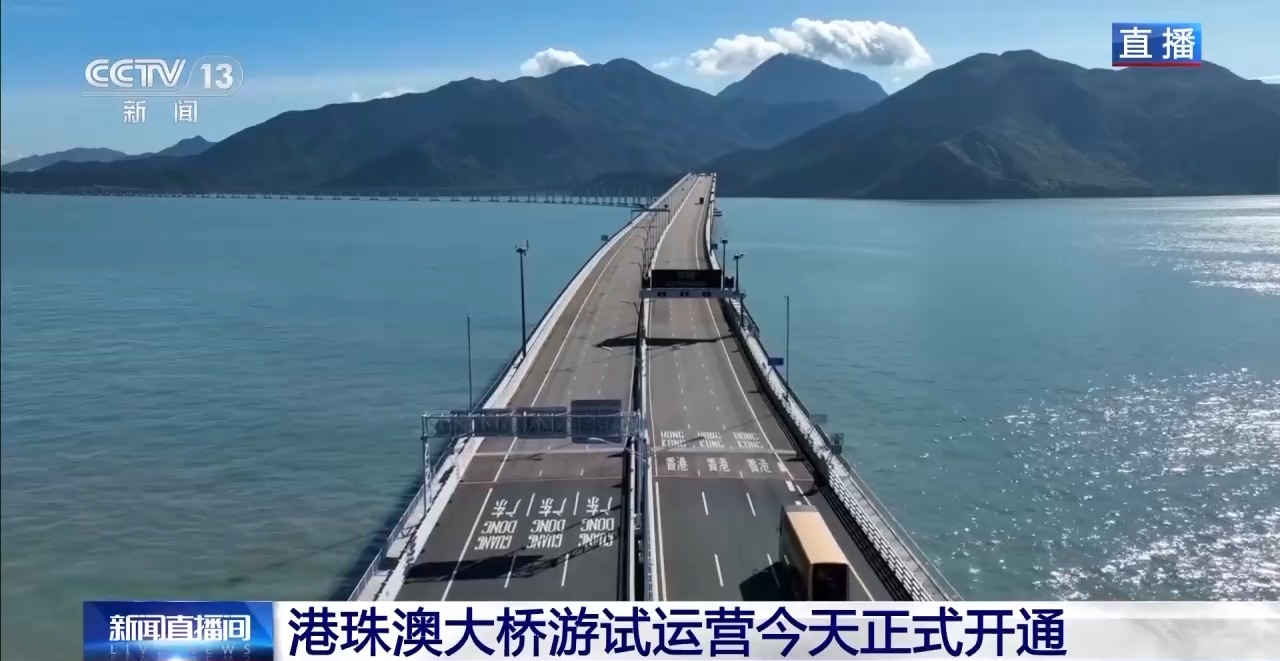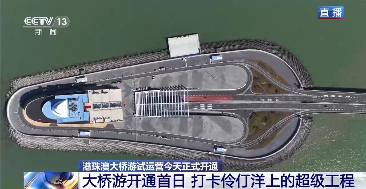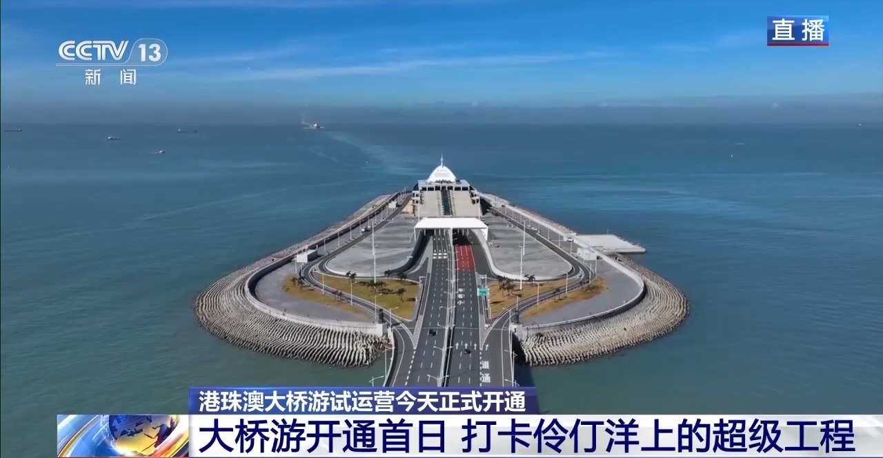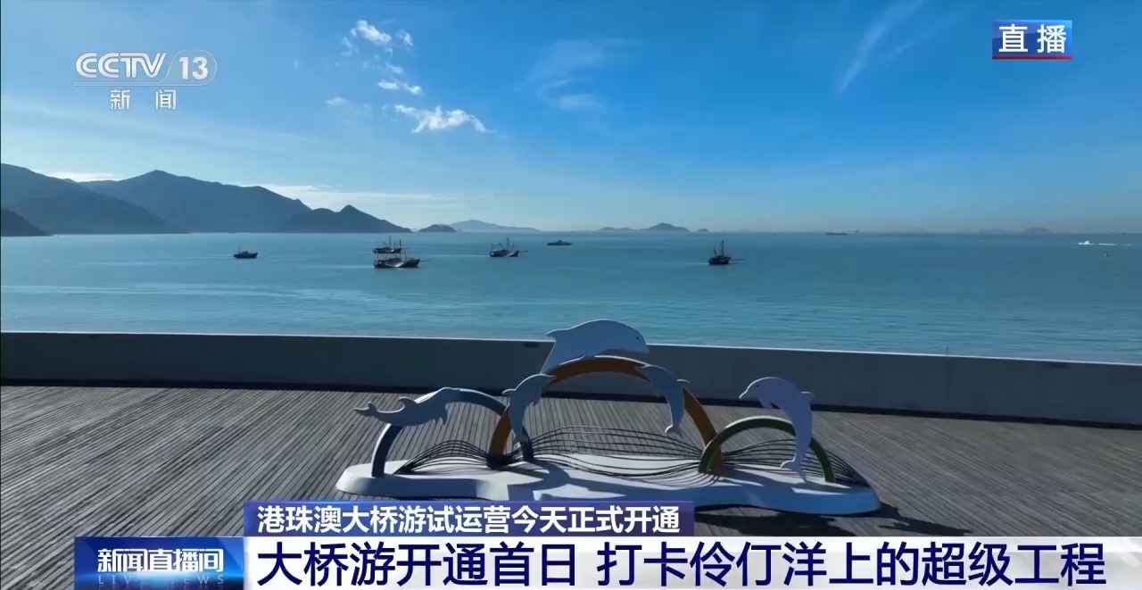 总台记者 曲柏宇:站在蓝海豚岛,可以看到有一段桥面的颜色不太一样,颜色的分界线就是内地与香港的交界处,在这里,还可以看到香港非常著名的大屿山。港珠澳大桥联通了粤港澳三地,也使香港国际机场充分发挥了既有资源的优势,120家航空公司的航班服务和超过220个国际航点,为大湾区乃至全国的旅客提供了更为便捷、更为丰富的国际航线。港珠澳大桥作为连接粤港澳三地的超级工程,已成为粤港澳大湾区的地标性建筑,也是伶仃洋上一道靓丽的风景线。