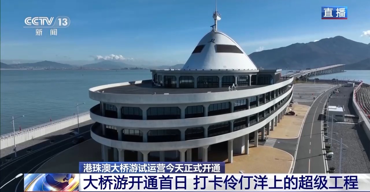 总台记者 曲柏宇:游客们上岛以后,可以游览的地方分为四个区域。第一个是广场区域,设有青州桥塔、中华白海豚、港珠澳大桥中英文欢迎语三个元素为一体的打卡点。第二个是主体建筑的楼梯,设计非常大气,一共有120级宽阔的大台阶,也寓意着大桥设计使用寿命为120年,同时站在台阶上可以回望香港大屿山和香港国际机场,景色非常优美,让人心旷神怡。第三个是位于主体建筑四层的大桥建设展厅,展厅里面两侧挂有港珠澳大桥建设过程和全景照片,并且摆放了许多大桥建设的模型和原材料,讲解员也将全程为游客讲解,充分展示建设过程中的新工艺、高科技,以及大桥建设一波三折的精彩故事。最后就是四层西侧的观景平台,这里可以全方位欣赏伶仃洋的美景,如果运气好,还可以看到被誉为“海上大熊猫”的中华白海豚。