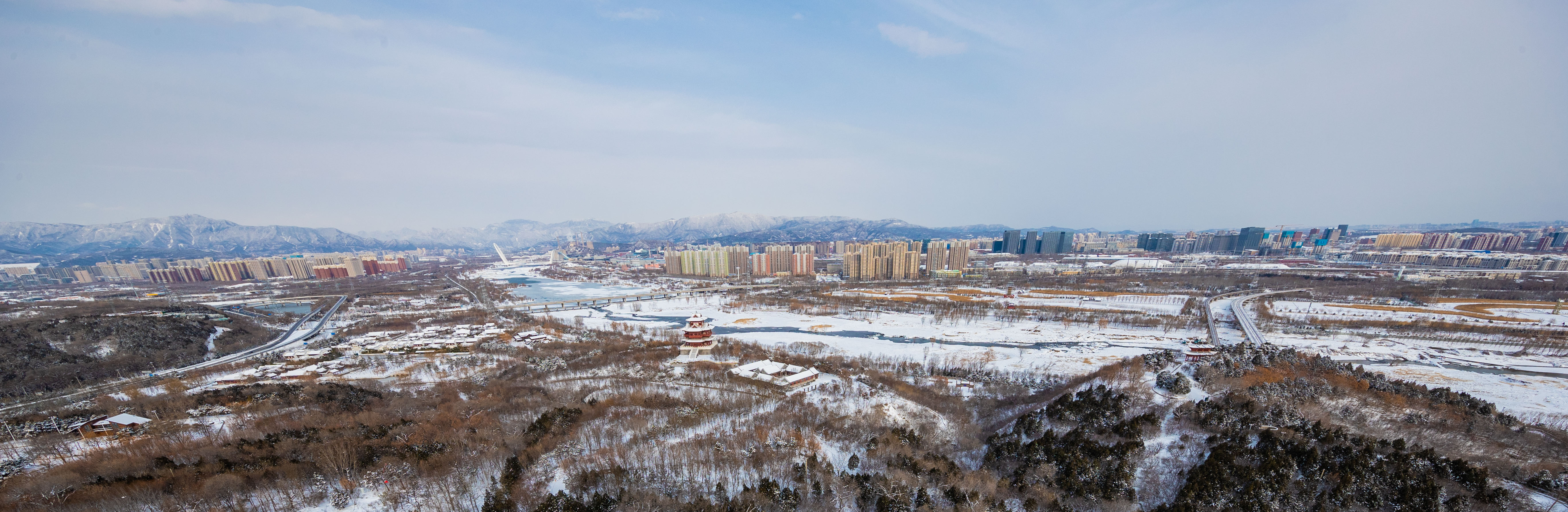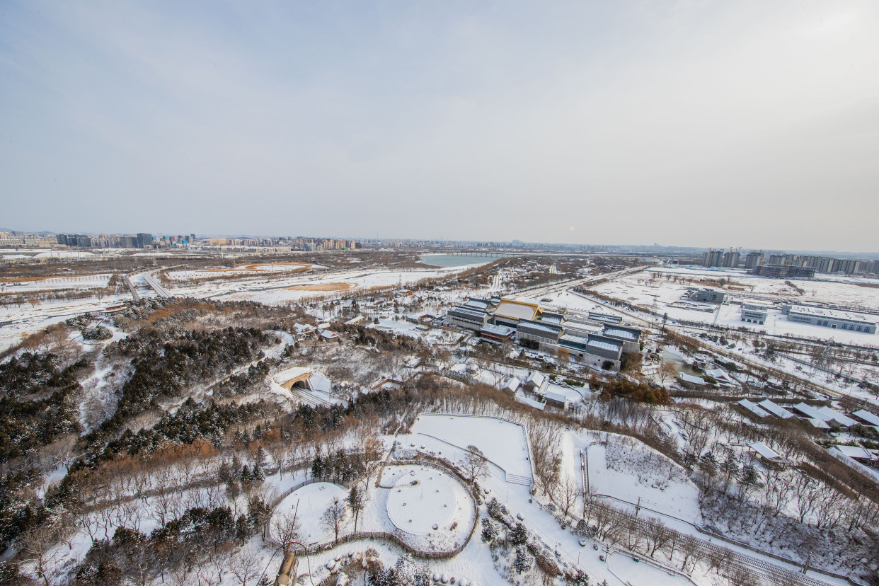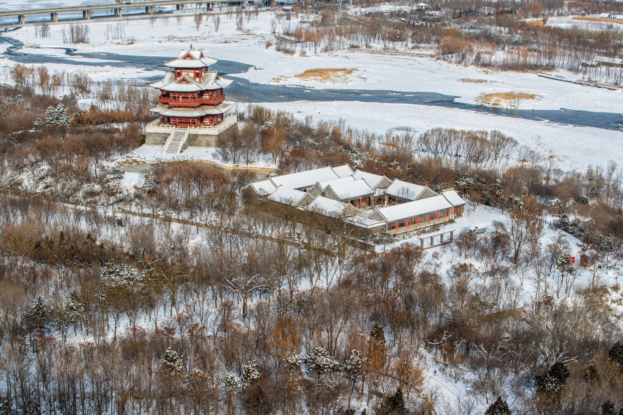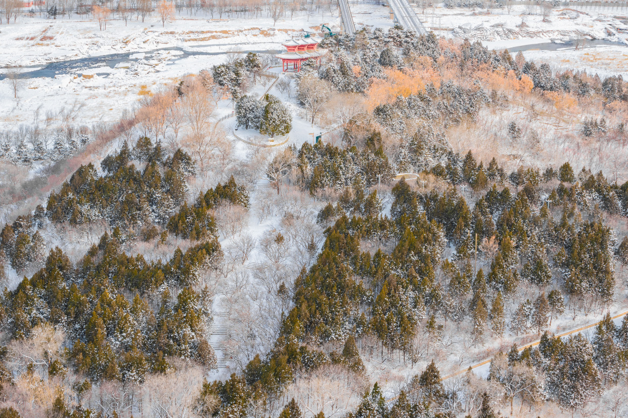 12月15日,记者来到北京园博园,整个园区被白雪覆盖,在白雪的映衬下,古建更添韵味。记者来到制高点俯瞰园博园,仿佛走入山水画之中,与夏季繁花相比,冬季的青黛色更加有深沉味道,远处燕京八景之一的西山晴雪展现在眼前。永定河在白雪的映衬下显出婀娜的曲线,惹得树上的松鼠也弯腰媲美。