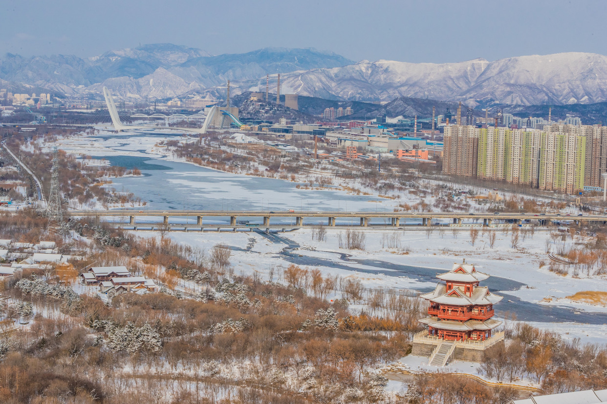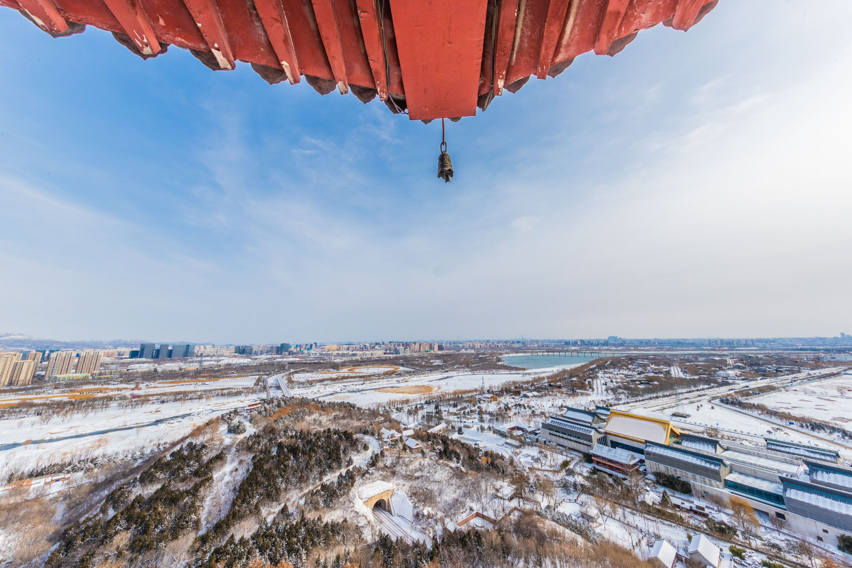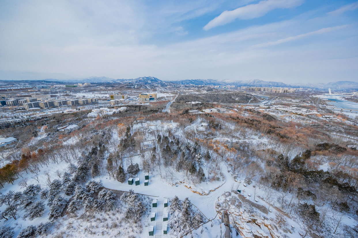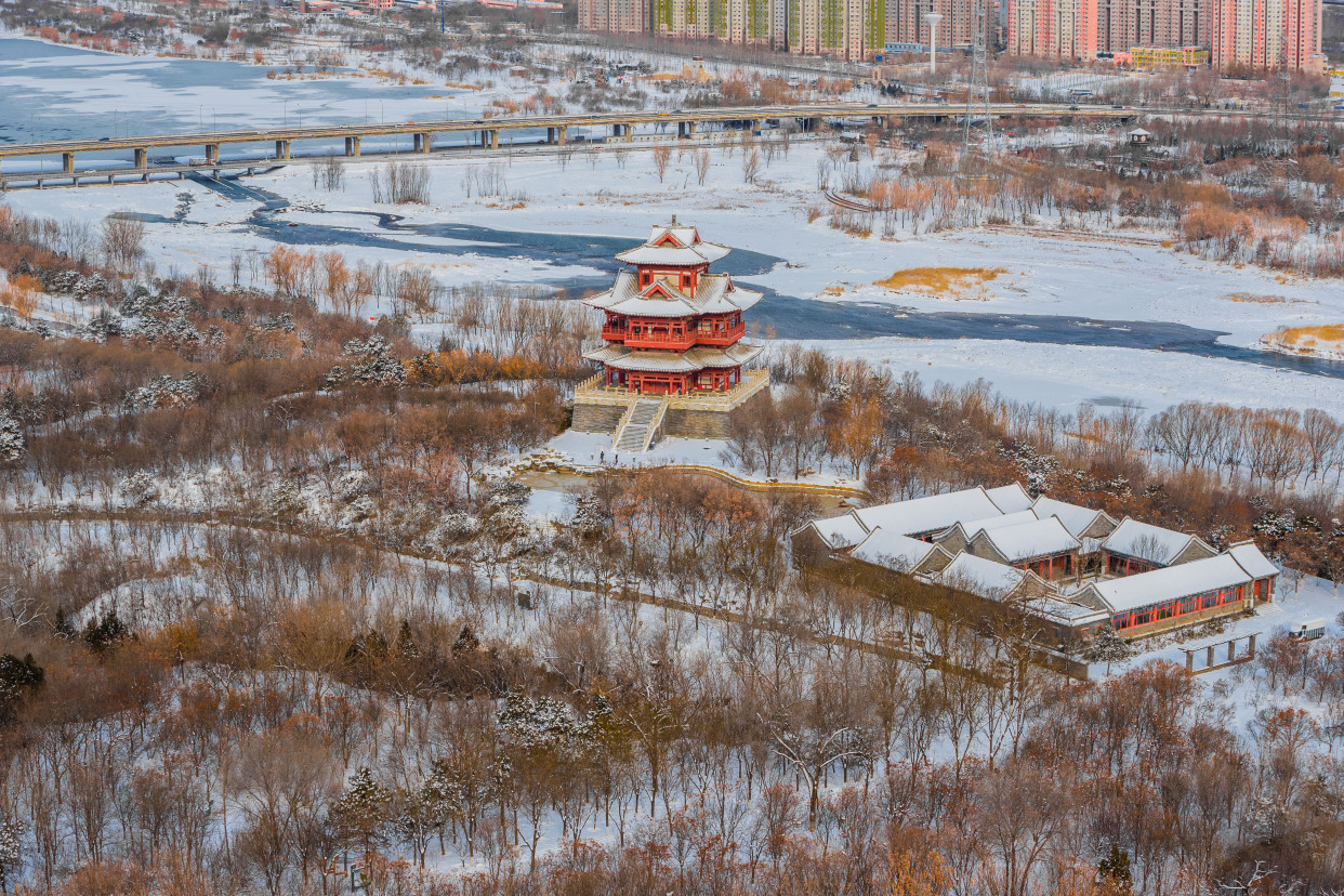 12月15日,记者来到北京园博园,整个园区被白雪覆盖,在白雪的映衬下,古建更添韵味。记者来到制高点俯瞰园博园,仿佛走入山水画之中,与夏季繁花相比,冬季的青黛色更加有深沉味道,远处燕京八景之一的西山晴雪展现在眼前。永定河在白雪的映衬下显出婀娜的曲线,惹得树上的松鼠也弯腰媲美。