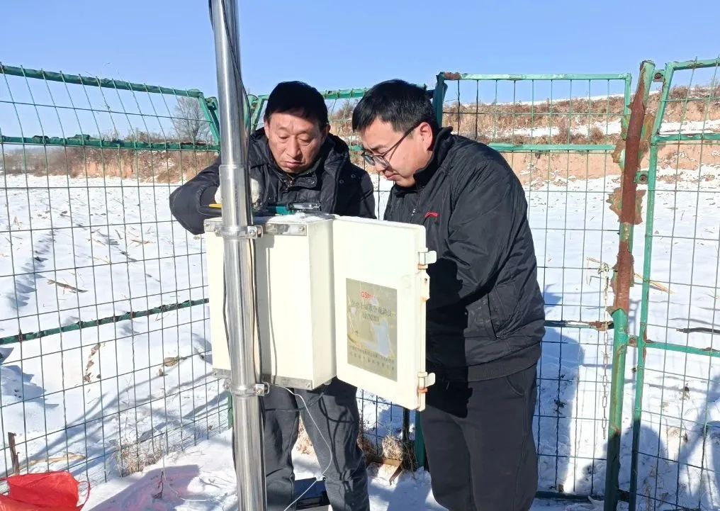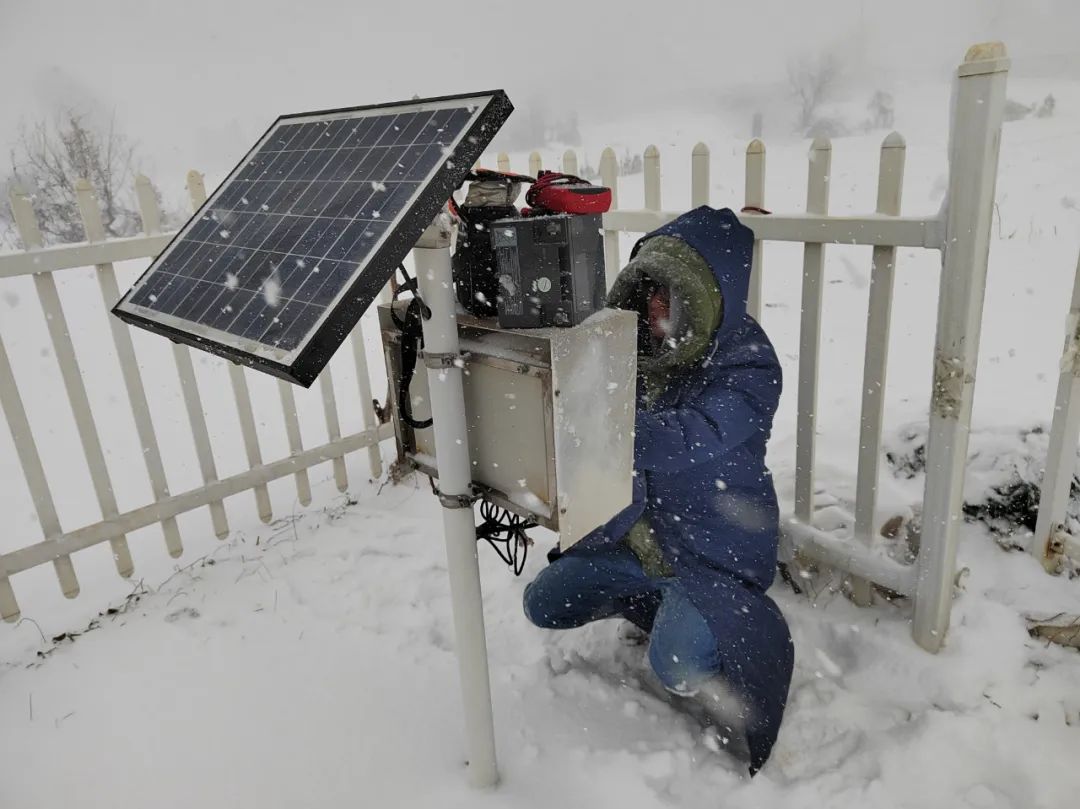 12月16日,山西省高平市最低气温达-20.6℃。气象业务人员前往土壤水分站开展维护,全力保障寒潮期间数据传输及时稳定摄影:李晋丽
