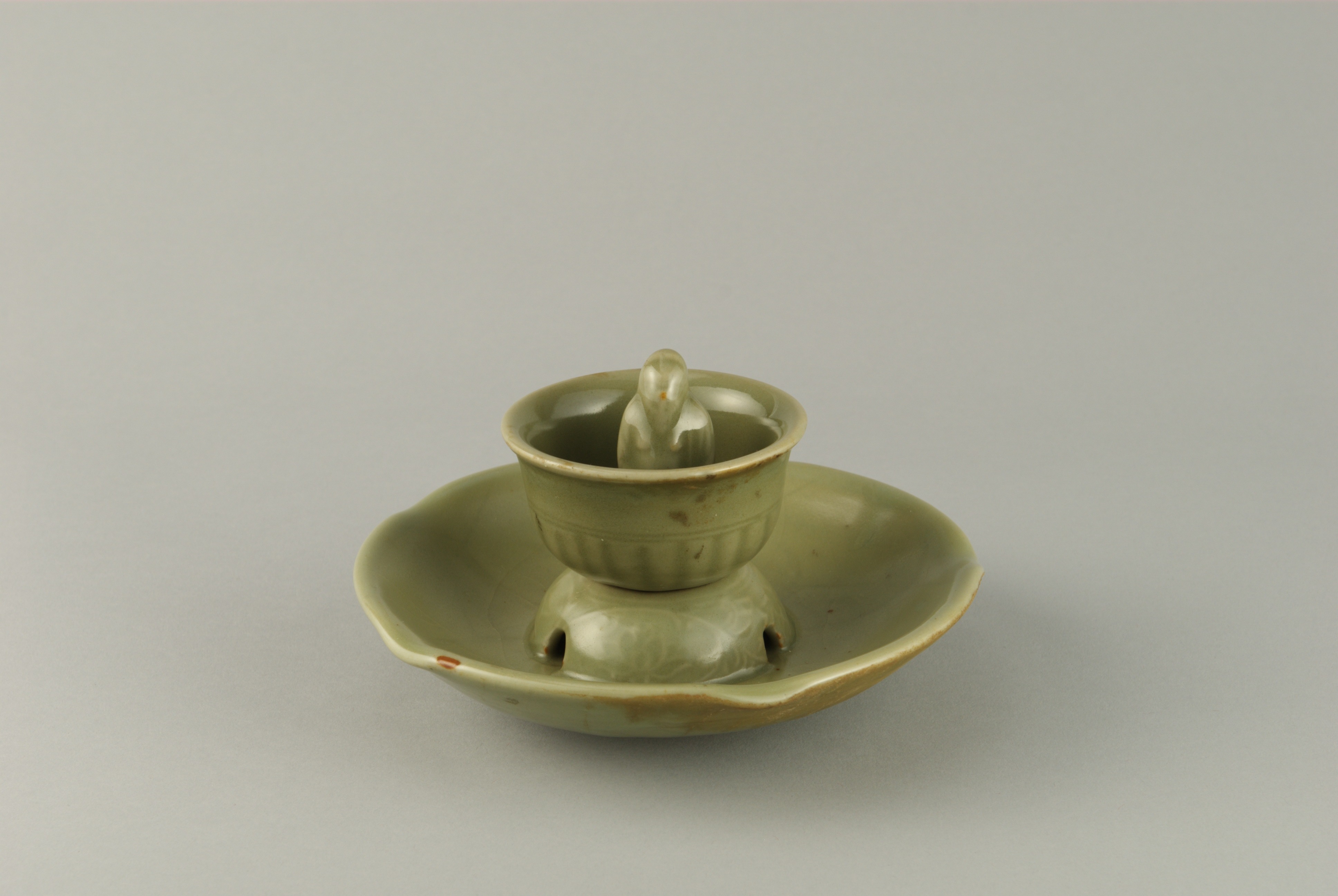 鸡笼式杯座凸印缠枝莲纹