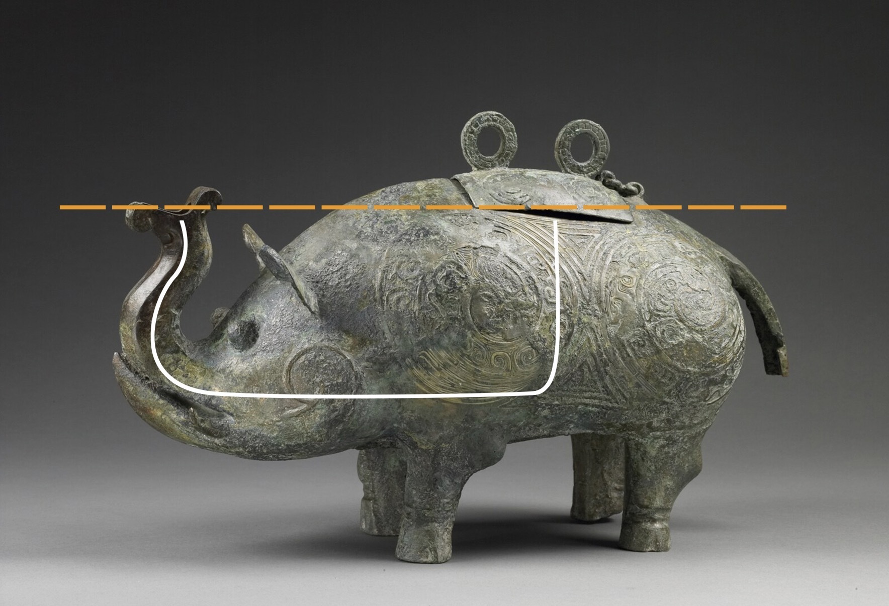象鼻高度与象背处于同一水平线