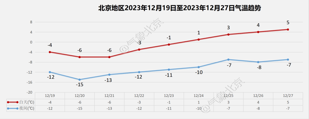19日白天(周二):晴;偏北风4级,阵风7级;平原地区最高气温-4℃,山区最高气温-7~-3℃;最小相对湿度20%。