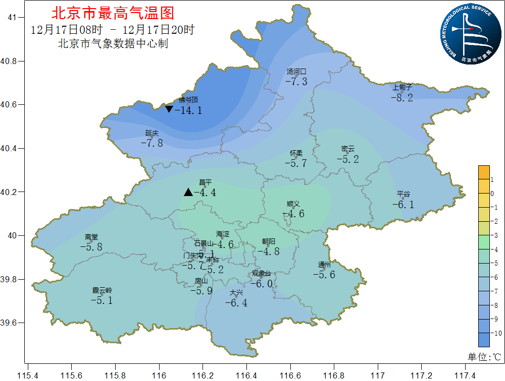 持续低温黄色预警中,预计今天白天最高气温-4℃上下,比昨天(白天观象台最高气温-6℃)稍有回升;但气温依旧低迷,尤其是夜间依旧是天寒地冻,最低气温在零下13℃上下,外出务必要多穿点儿,长时间在户外还要防止耳朵、手脚冻伤。