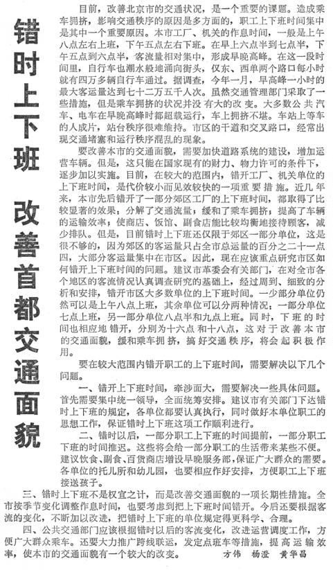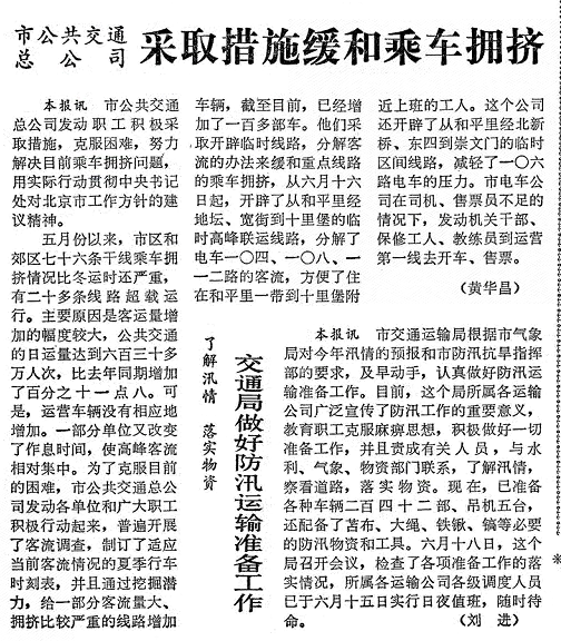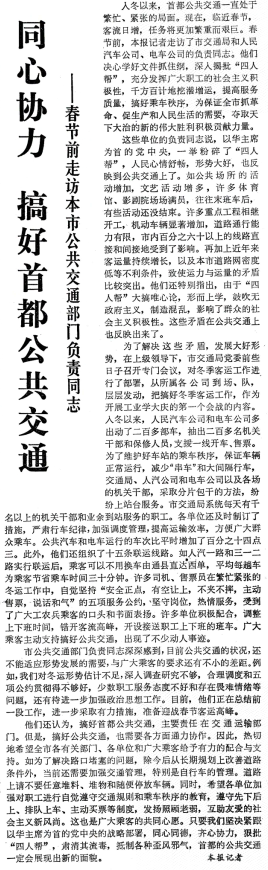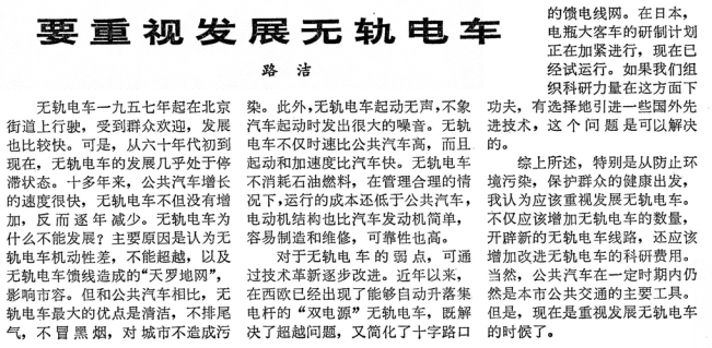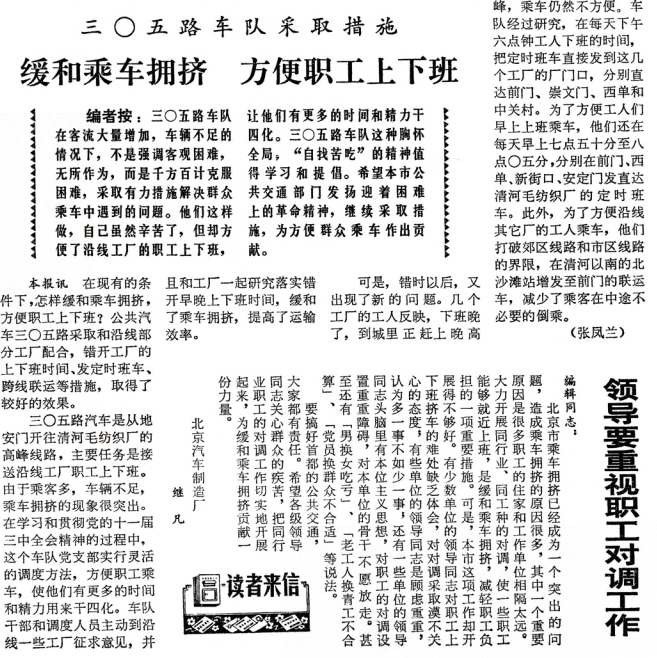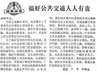 1977年1月26日,北京日报刊登了读者来信,乘客提到冬季客流量需求,希望能搞好公共交通,2月17日,公共交通负责同志给予答复。