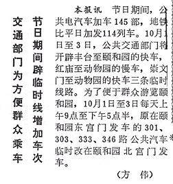 在1981年国庆节前夕,为了满足市民需求,公交和地铁开始临时增加车次。