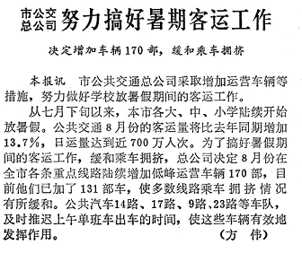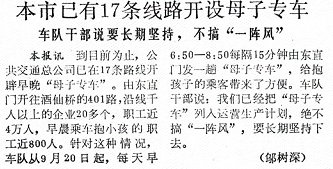 为了方便早晨乘车抱小孩的职工,1984年,公共交通总公司还开设了母子专车。
