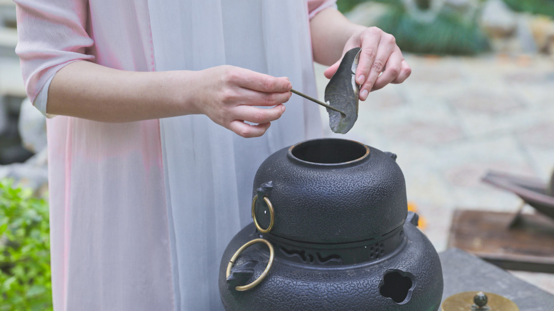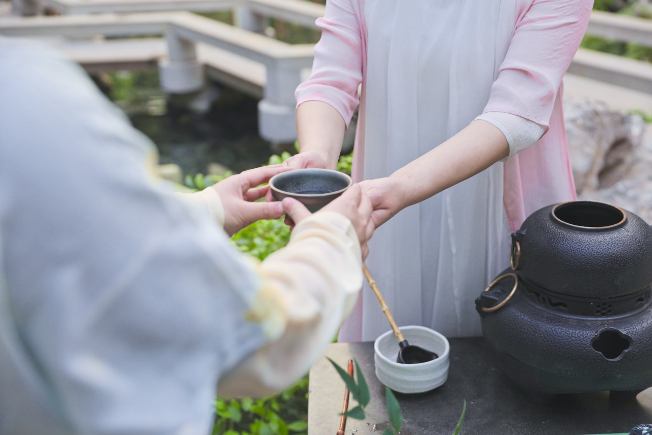 冬至日,于园林中重现“唐代煎茶”,依古法炙茶、碾茶,仿“茶圣”陆羽煎茶之法,将古法煎茶魅力与跨越千年的唐茶礼仪尽收眼底。