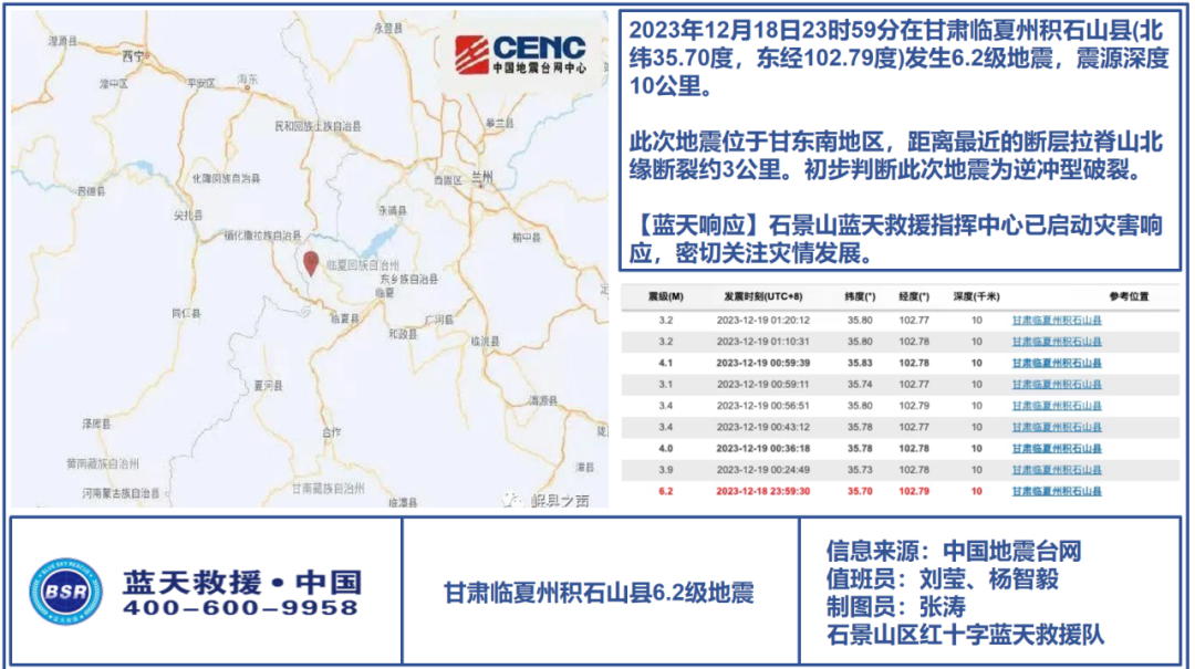 12月18日23时59分,甘肃省临夏州积石山县发生6.2级地震,灾情备受关注。