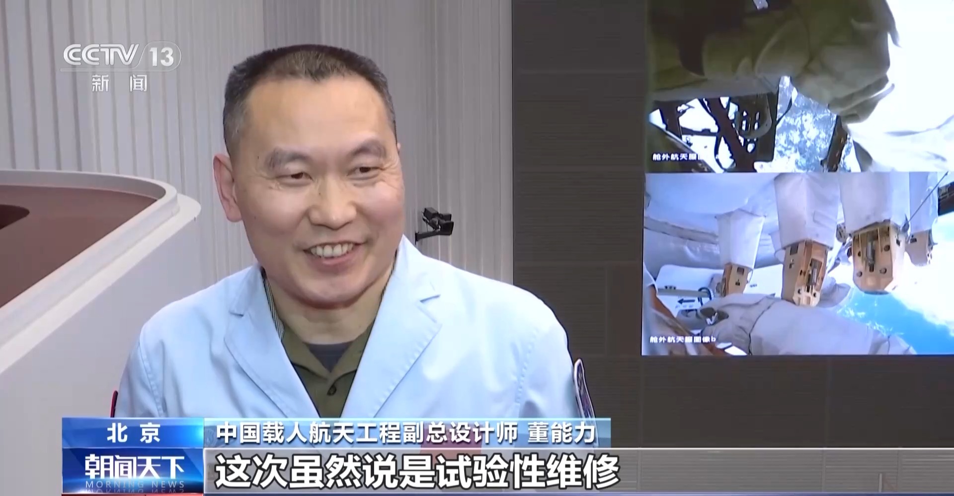 中国载人航天工程副总设计师 董能力:这次虽然说是试验性维修,其实我们达到了维修的目的,这次非常棒,完成得非常好。标志着我们具备了舱外维修的能力,也为我们后续保障空间站的安全可靠稳定运行打下了一个坚实的基础。