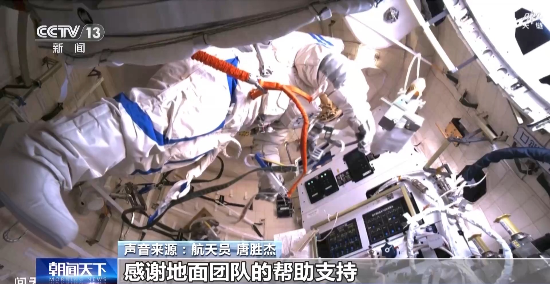 航天员 唐胜杰:感谢地面团队的帮助支持,让我的第一次出舱体验如此美好。在一起追梦圆梦的路上,是你们给了我们最温暖最安全的依靠,我们永远和大家在一起。