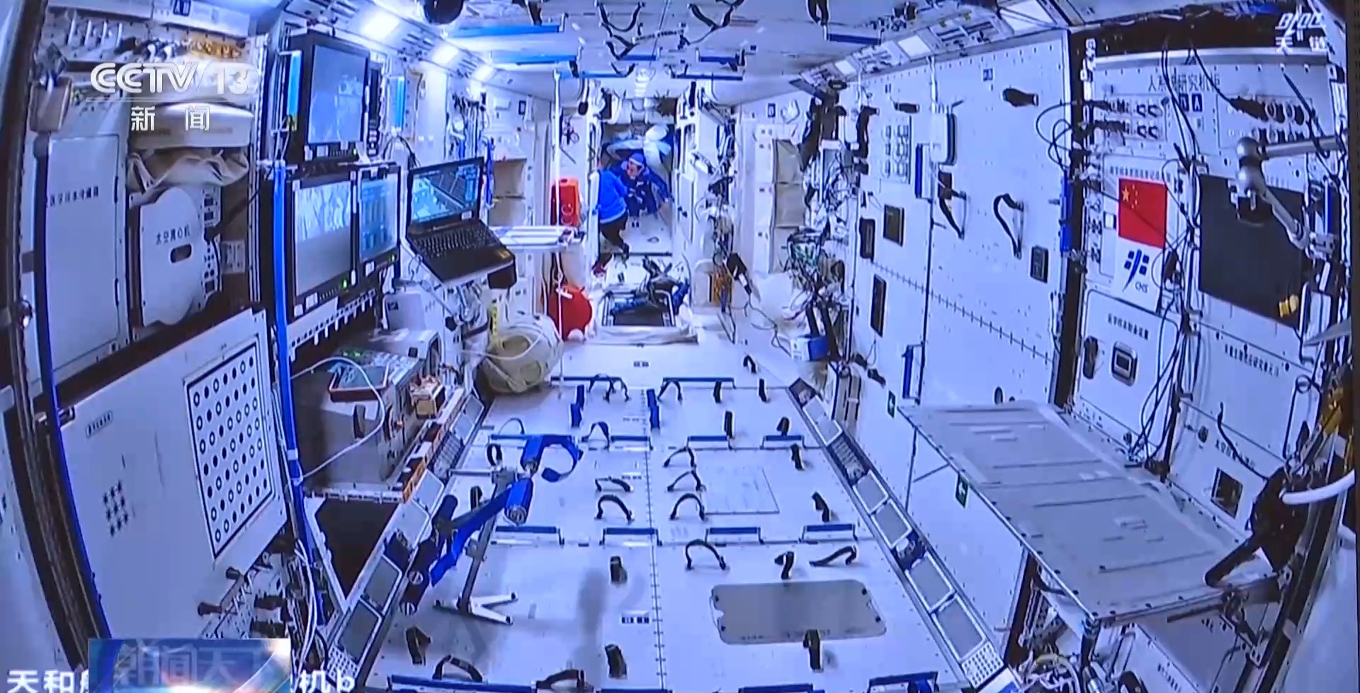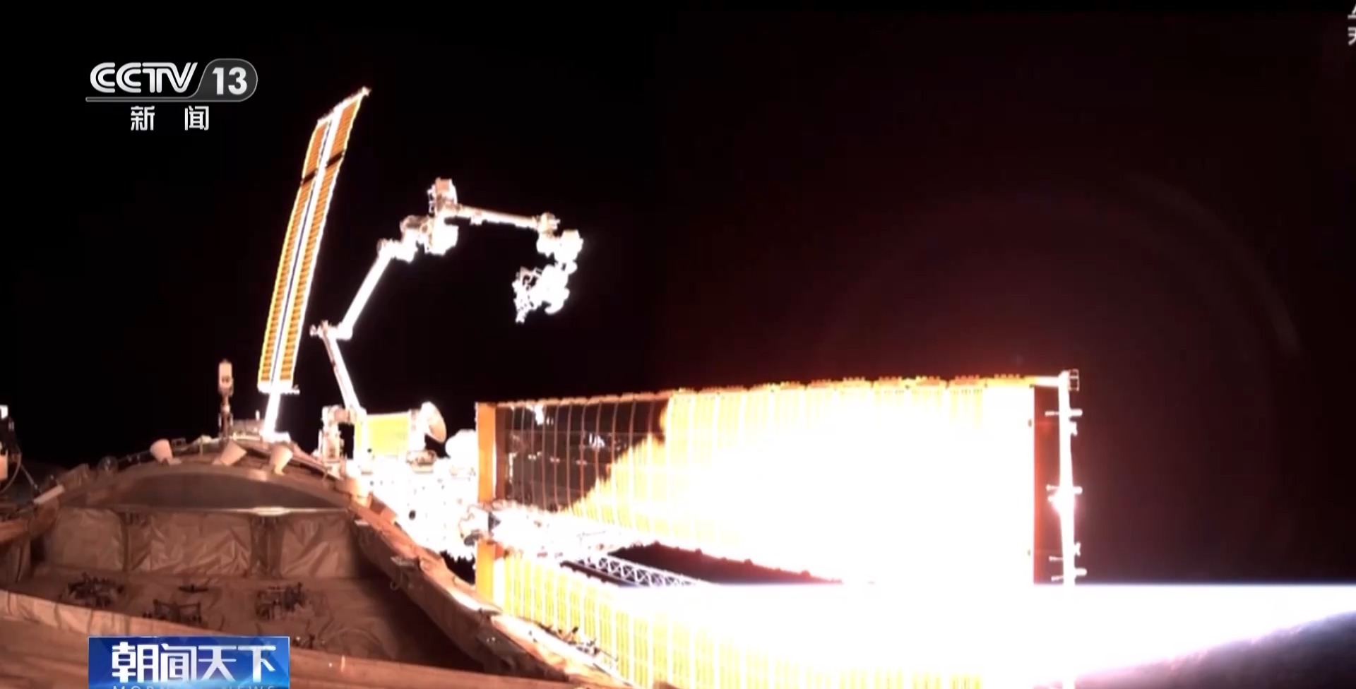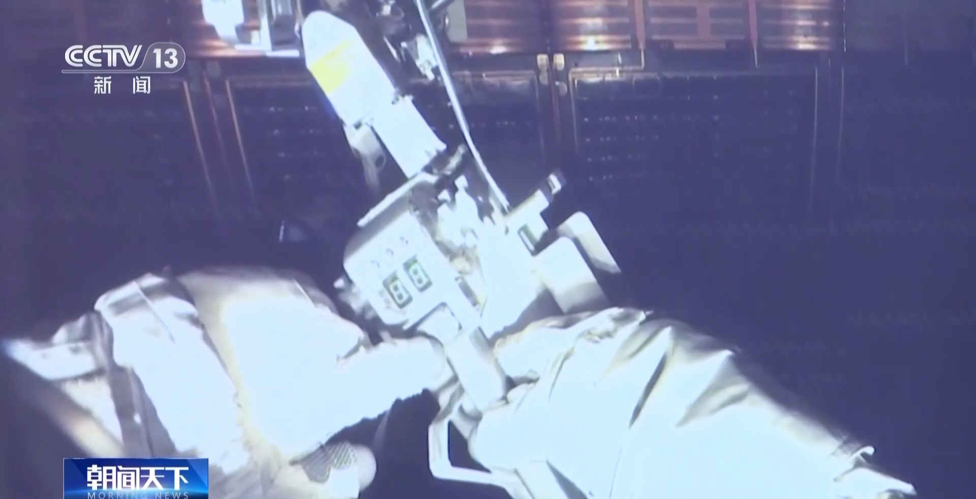总台央视记者 王晓丹:在航天员和空间应用支持厅,通过大屏幕可以看到,处于阴影区时,航天员汤洪波在机械臂的支持下,来到多个巡检点位,对核心舱太阳翼进行相关的维修作业。这一次出舱任务是空间站首次试验性舱外维修作业,对方案设计、地面人员支持配合以及航天员在轨操作都提出了非常高的要求。