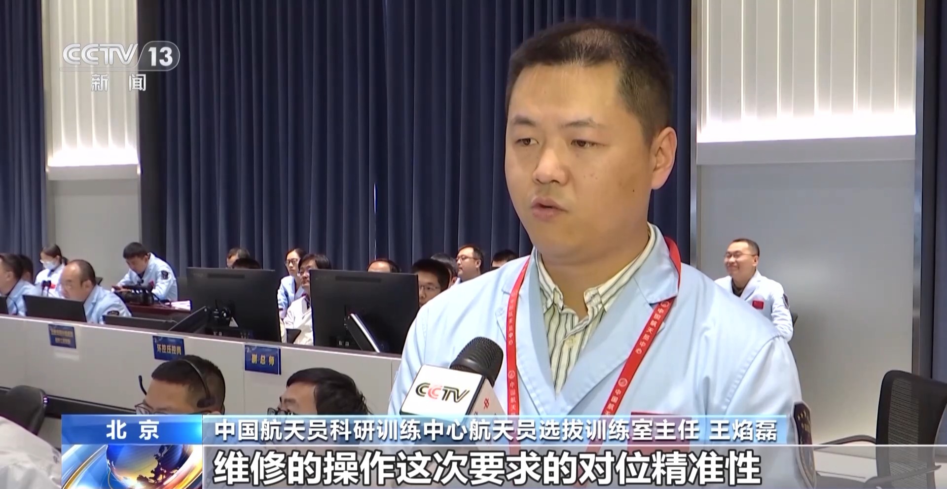 中国航天员科研训练中心航天员选拔训练室主任 王焰磊:维修的操作这次要求的对位精准性非常高,所以它对航天员操作的精准度,以及航天员对工具使用的熟练度要求比较高。还要做地面和天地的交互确认,确认我们的位置准不准,然后航天员作业完成以后,还要判断我们维修作业达没达到预期,所以这种确认工作,这个步骤和环节会增加很多。