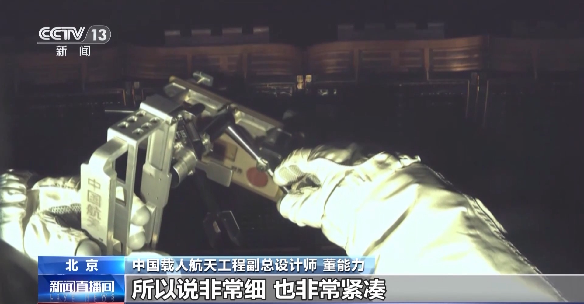 中国载人航天工程副总设计师 董能力:这次的作业它的一个太阳翼,具有一定的柔性,它也很薄,它是有一定的空间的限制,人到位之后要完成这个操作,大概有20~30个动作,所以说非常细,也非常紧凑,因为他要在阴影区操作。我们每一个动作要确认到位,不能找错位置。第二步就是各个动作要一致,要连贯,不能出现差错。第三个就是我们是不是作业到位了。这些都是这一次活动,因为它跟其它的出舱活动区别。