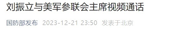 12月21日,中央军委委员、军委联合参谋部参谋长刘振立应约与美军参联会主席布朗进行视频通话。