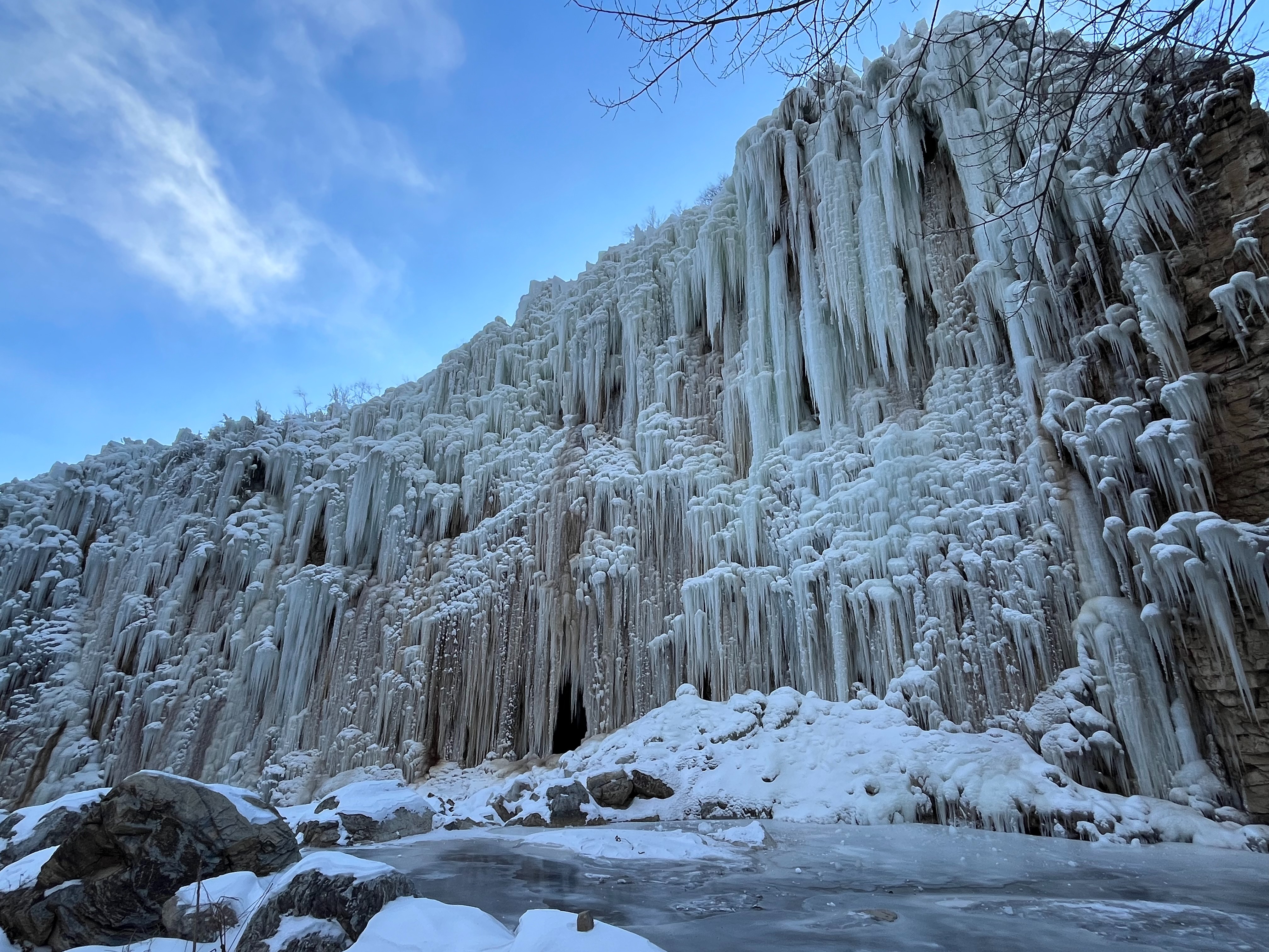 冰瀑是冬天凝结的浪漫。它们顺着山势倾泻而下,各有各的形态,像一朵朵绽放的花,又像瑶琳仙境中那一座座钟乳石,令人叹为观止。置身其中,时间仿佛在这一刻停滞,一切定格为冬日的美好风光,让人在玉树琼枝的冰雪世界里无限遐想,感受岁月静好。
