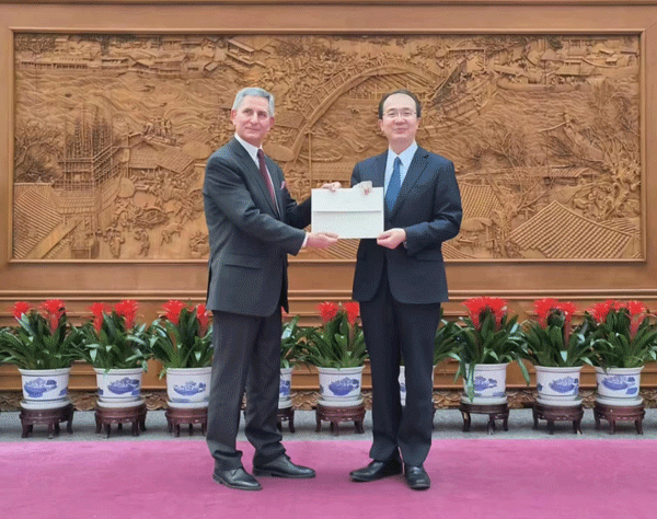 2023年12月22日,外交部礼宾司司长洪磊分别接受日本新任驻华大使金杉宪治、保加利亚新任驻华大使特霍夫递交国书副本。金杉宪治大使、特霍夫大使于12月19日抵华。