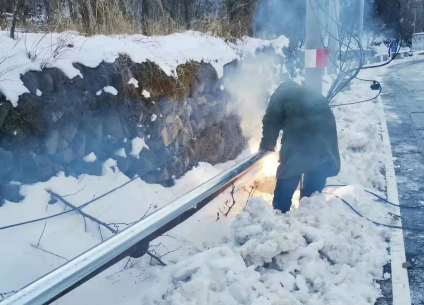 狼儿峪村夜间气温达到零下21摄氏度,参与抢修的人员冒着严寒,昼夜不停、加班加点。抢修过程中,工作人员的手指因严寒冻得发木,额头上也布满了薄薄的白霜,但他们依然咬紧牙关,化冻冰块、架设管道。直到23日23时许,断裂的水管终于恢复畅通。施工人员又小心翼翼用保温材料将管道包好,做好防冻措施。