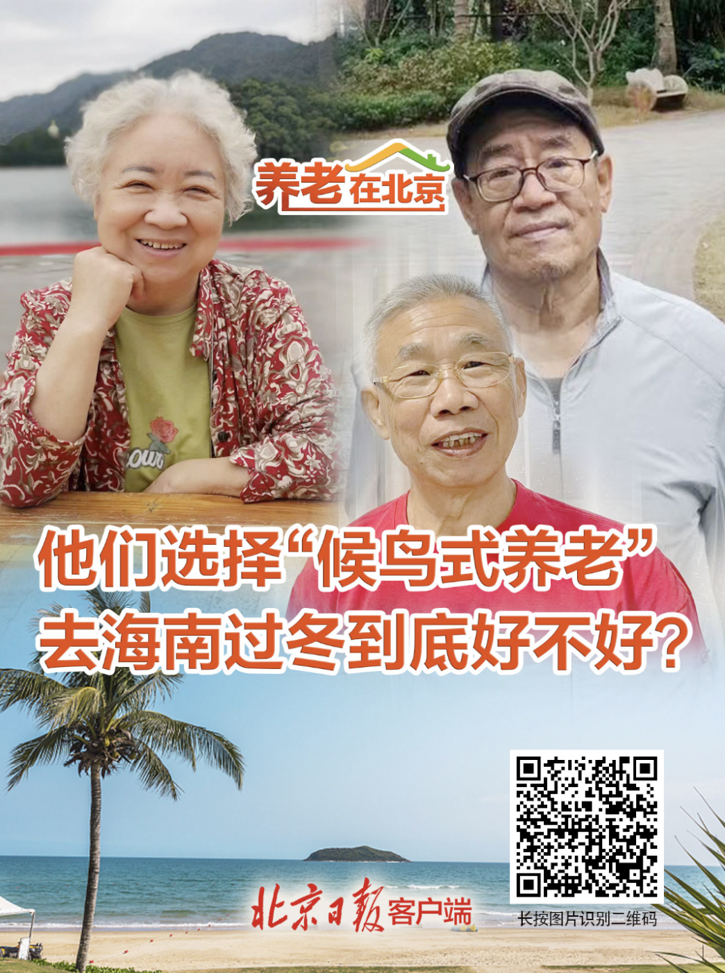 在近日召开的北京市完善养老服务体系系列政策专场发布会上,鼓励老年人“冬南夏北”候鸟式旅居养老成为关注。其实近些年,已经有很多北京老人过上了这种养老生活,冬天去海南享受沙滩暖阳,来年春暖花开再飞回北京。今冬北京寒潮肆虐,他们在海南过得怎么样?