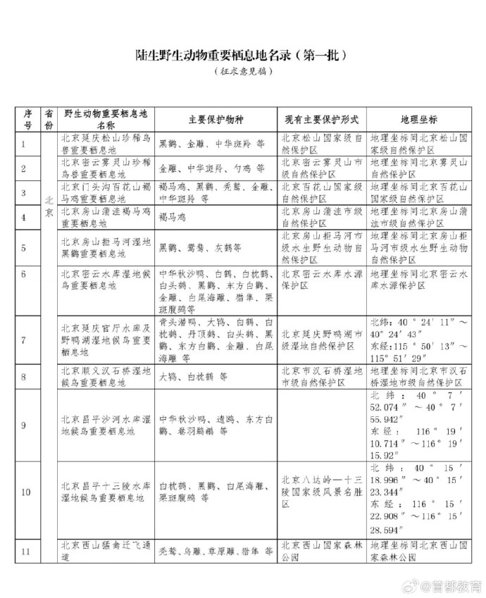 国家林业和草原局近日发布了首批789处陆生野生动物重要栖息地名录,保护了82.36%的国家重点保护陆生野生动物种类。北京这些地方入选↓↓