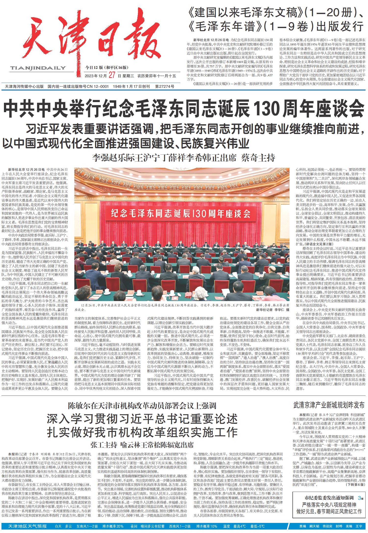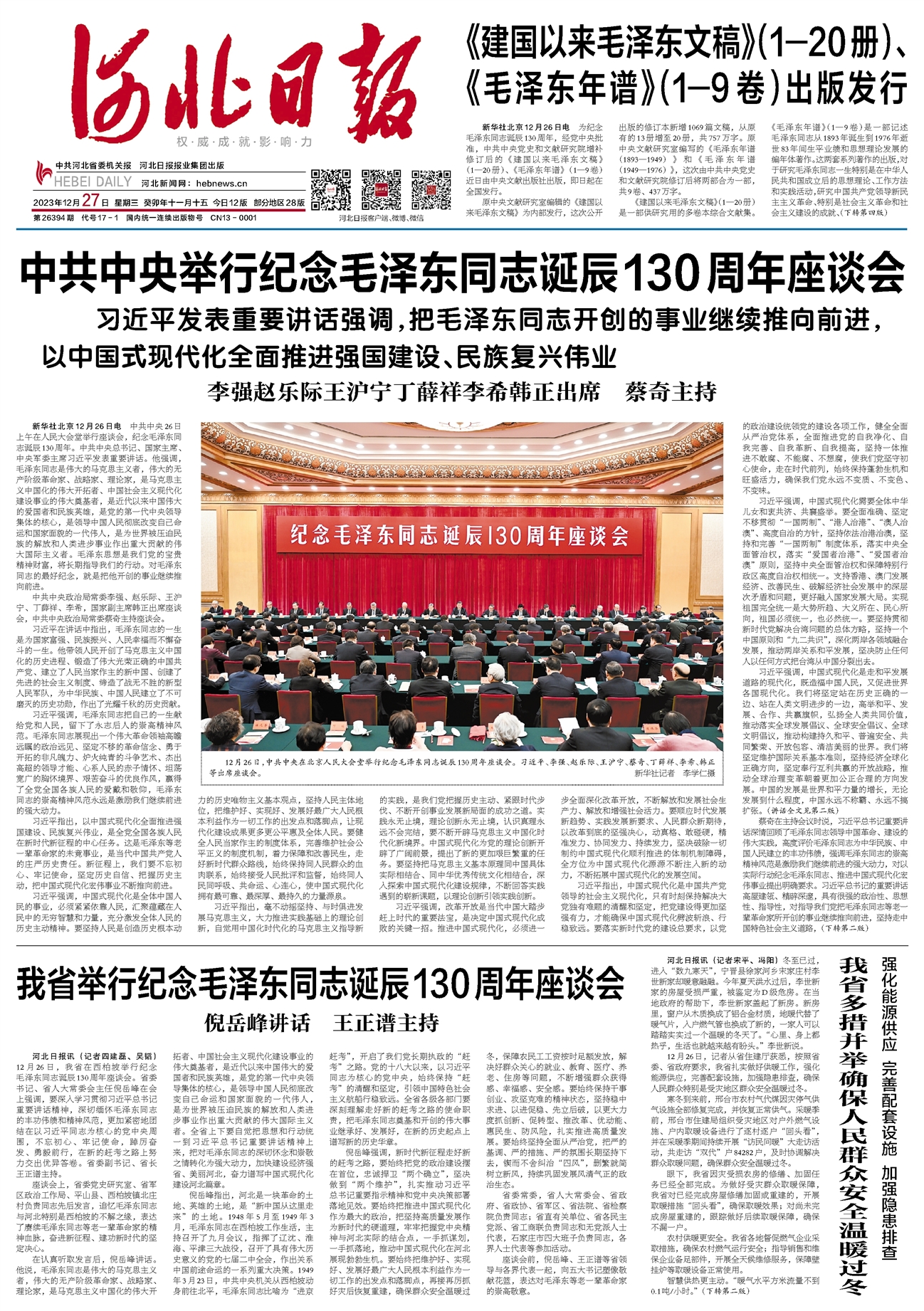 ▶河北省举行纪念毛泽东同志诞辰130周年座谈会