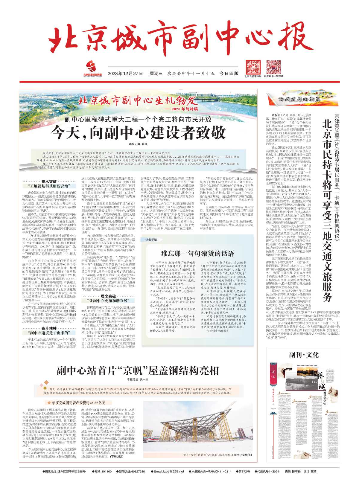 临近岁末,北京城市副中心三大文化建筑即将对市民开放。这是北京城市副中心重大工程中又一里程碑式的项目。过去短短数年间,北京城市副中心已有一批重大工程投用。从行政办公区到回迁居民保障房,从环球影城到城市绿心;从远洋乐堤港到潞城全民健身中心……在夜以继日的建设中,北京城市副中心逐渐拉开城市框架;而当前在建和即将建设的北京城市副中心站综合交通枢纽、京唐城际铁路、海昌海洋公园等,将为这座新城奏响新的乐章。详情>>