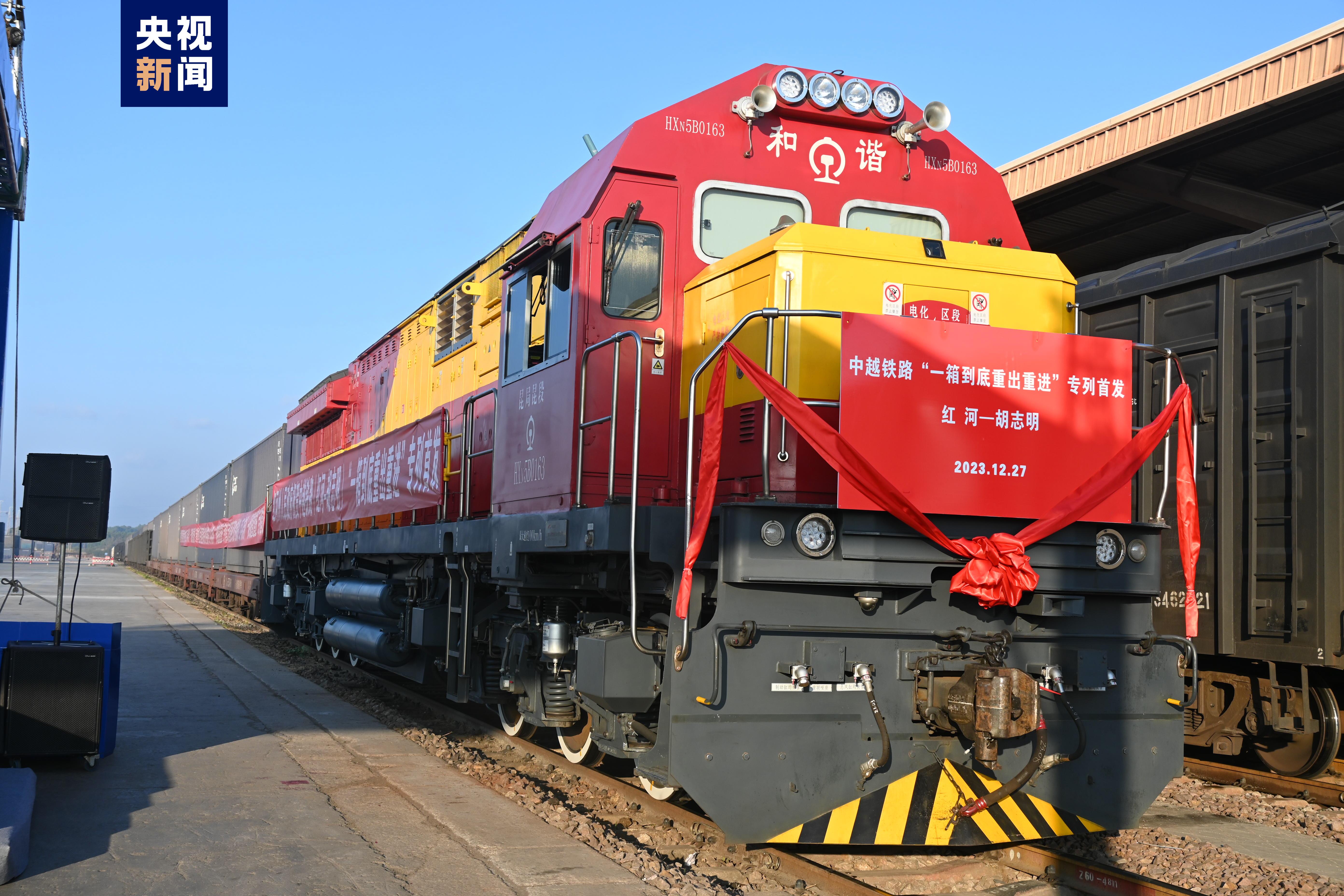 12月27日9时30分,在汽笛声中,满载14柜云南马铃薯的44903次集装箱列车缓缓驶出红河哈尼族彝族自治州蒙自市蒙自北站,标志着中越铁路“一箱到底重出重进”专列首发。2天后,这批马铃薯将运抵越南胡志明市。