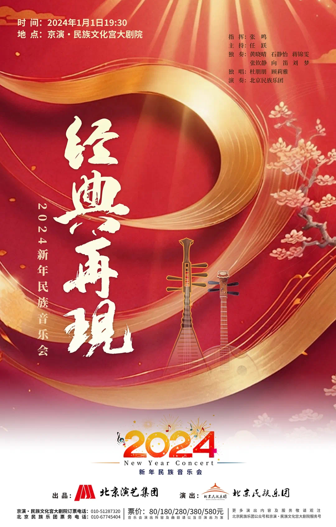 新年音乐会,传统民族音乐也不能缺席。12月31日晚,中央民族乐团将在该团民族音乐厅上演《2024新年歌会——今朝颂》,这是一场声乐与器乐交织的演出。中央民族乐团表示,为支援甘肃、青海地区受灾群众,此次演出票房收入将全部捐给灾区,为受灾人民献上祝福和爱心。元旦当天,北京民族乐团将连续第九年登台京演·民族宫大剧院上演新年音乐会。前几年北京民族乐团带观众朋友们领略国潮、国风、国漫等时尚民乐风格,今年乐团回归经典曲目,将民族乐器的传统曲目进行重新编配,在耳熟能详的音乐中,带领观众寻找民族归属感。