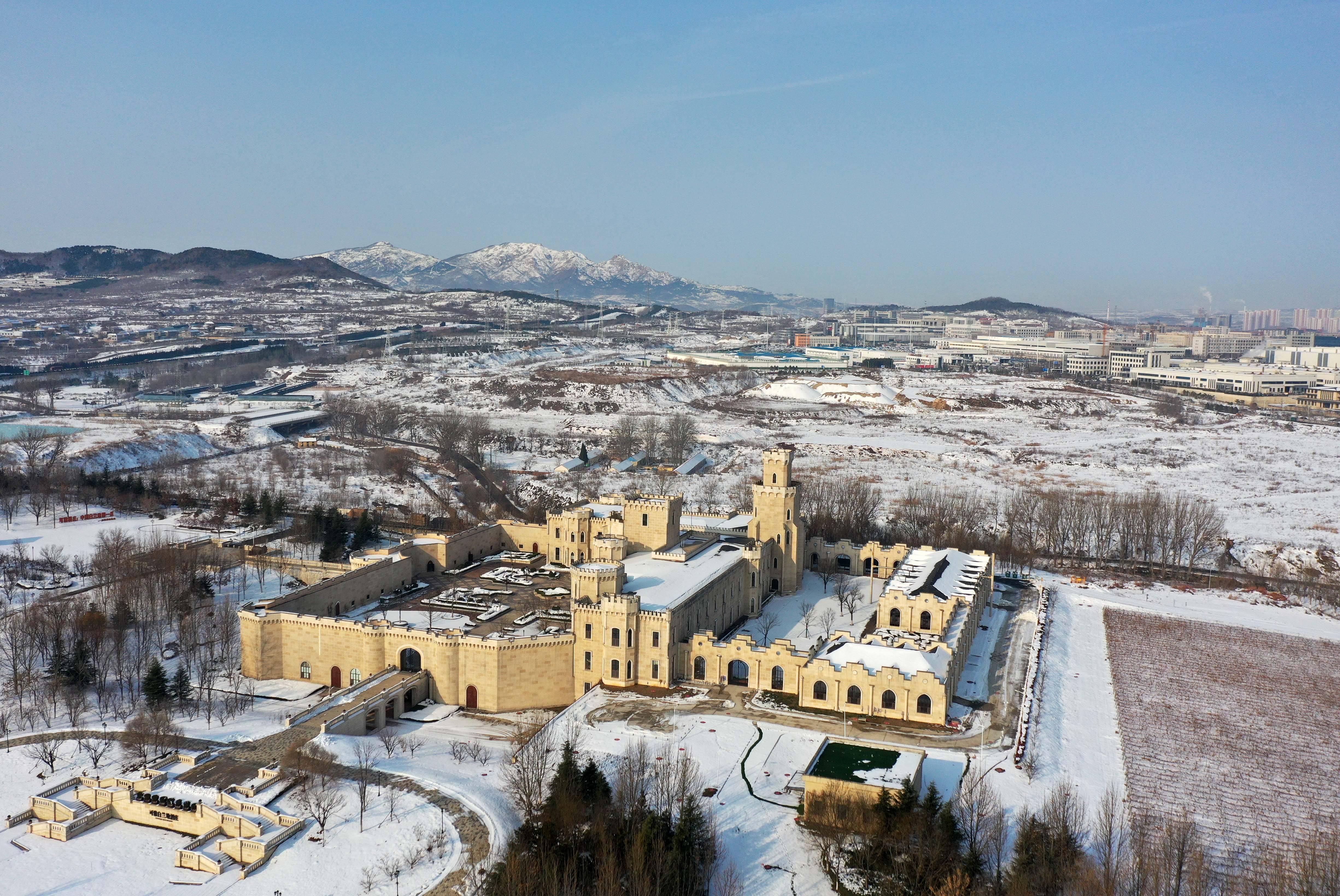 雪原之上的可雅白兰地酒庄如童话城堡一般,这是中国第一座白兰地酒庄。