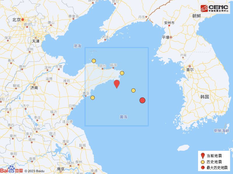历史地震:根据中国地震台网速报目录,震中周边200公里内近5年来发生3级以上地震共6次,最大地震是2021年1月19日在黄海海域发生的4.6级地震(距离本次震中169公里),历史地震分布如图。