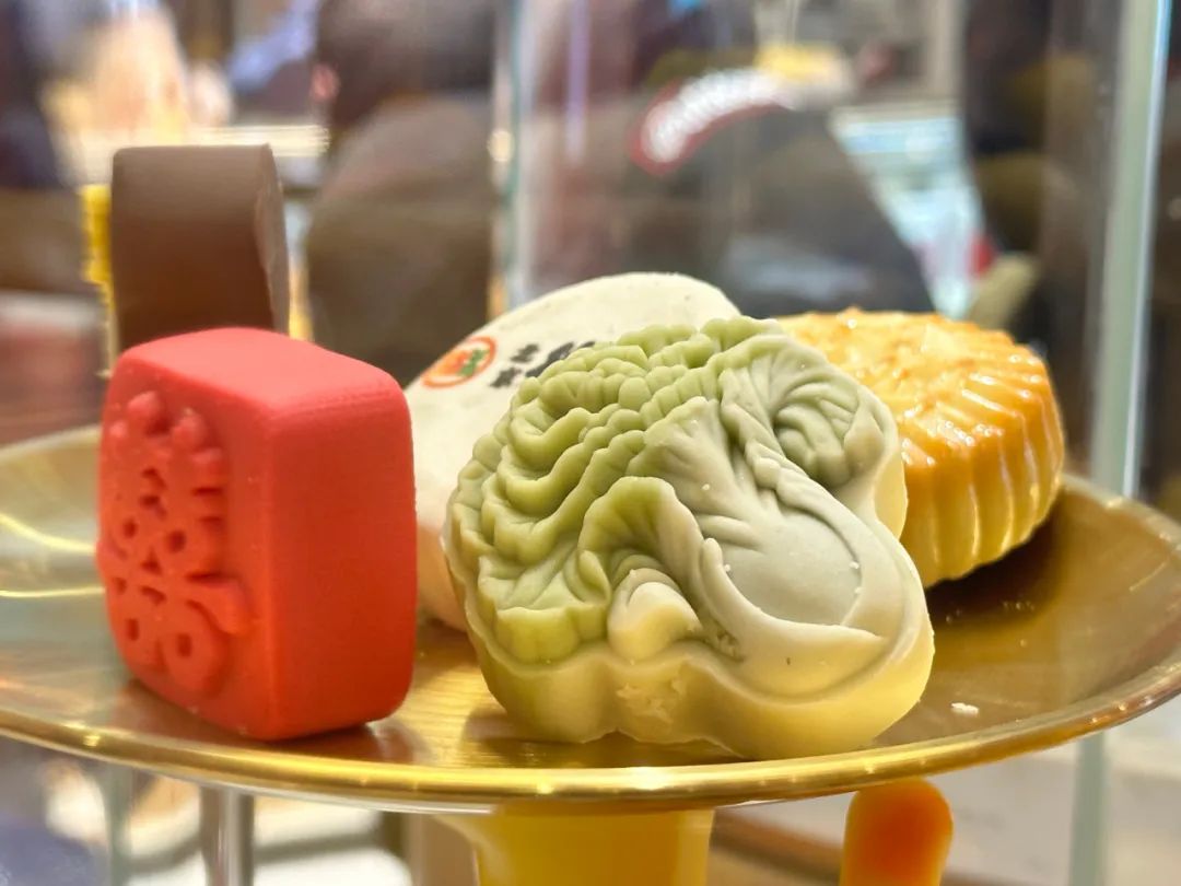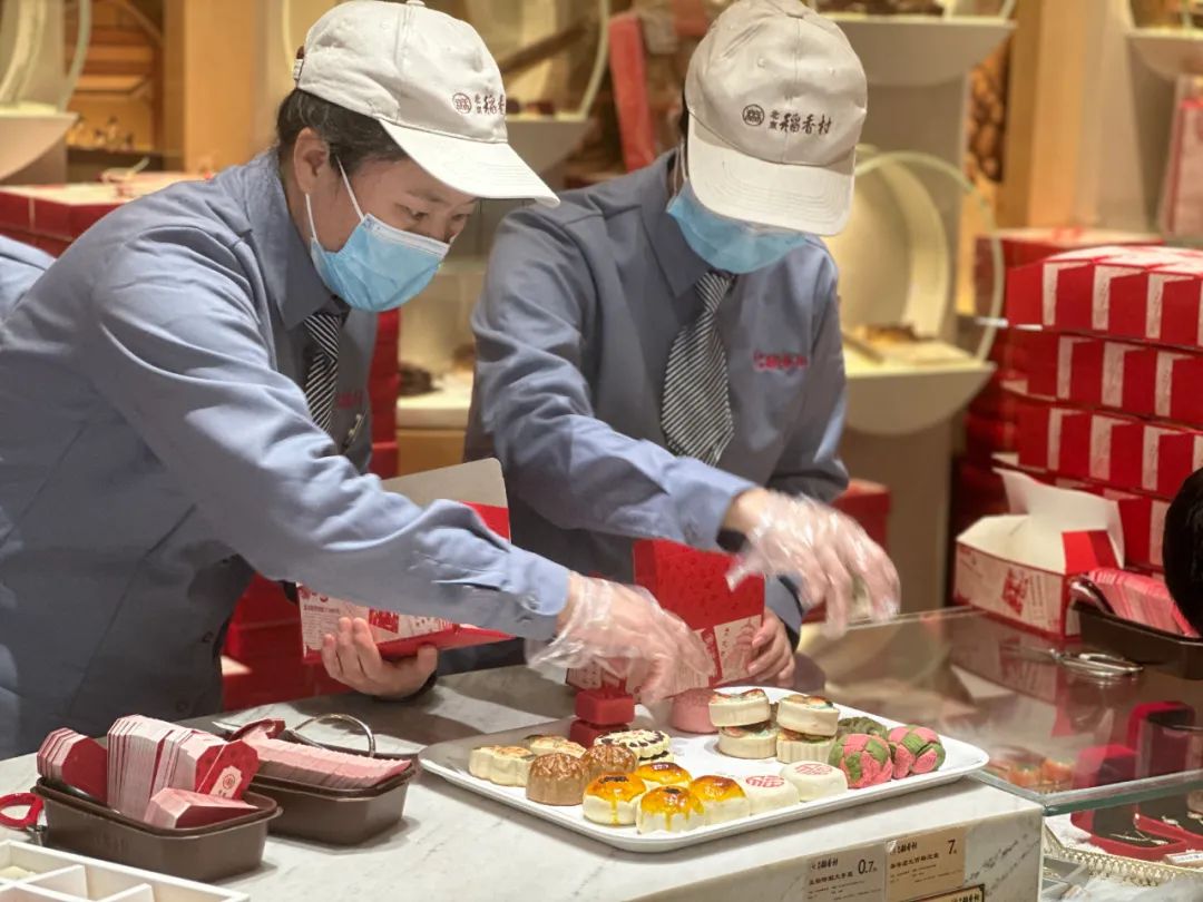 一大早,北京稻香村零号店里人头攒动,人们在琳琅满目的柜台前挑选喜欢的糕点。传统民乐造型的“琵琶糕”、复古柔美的“盘纽酥”、匠心传承的“剪纸方酥”、仿古摆件造型的“翡翠白菜”都让人眼前一亮,其中北京稻香村与北京市珐琅厂联名推出的特色产品“珐琅糕”格外惹人喜爱。