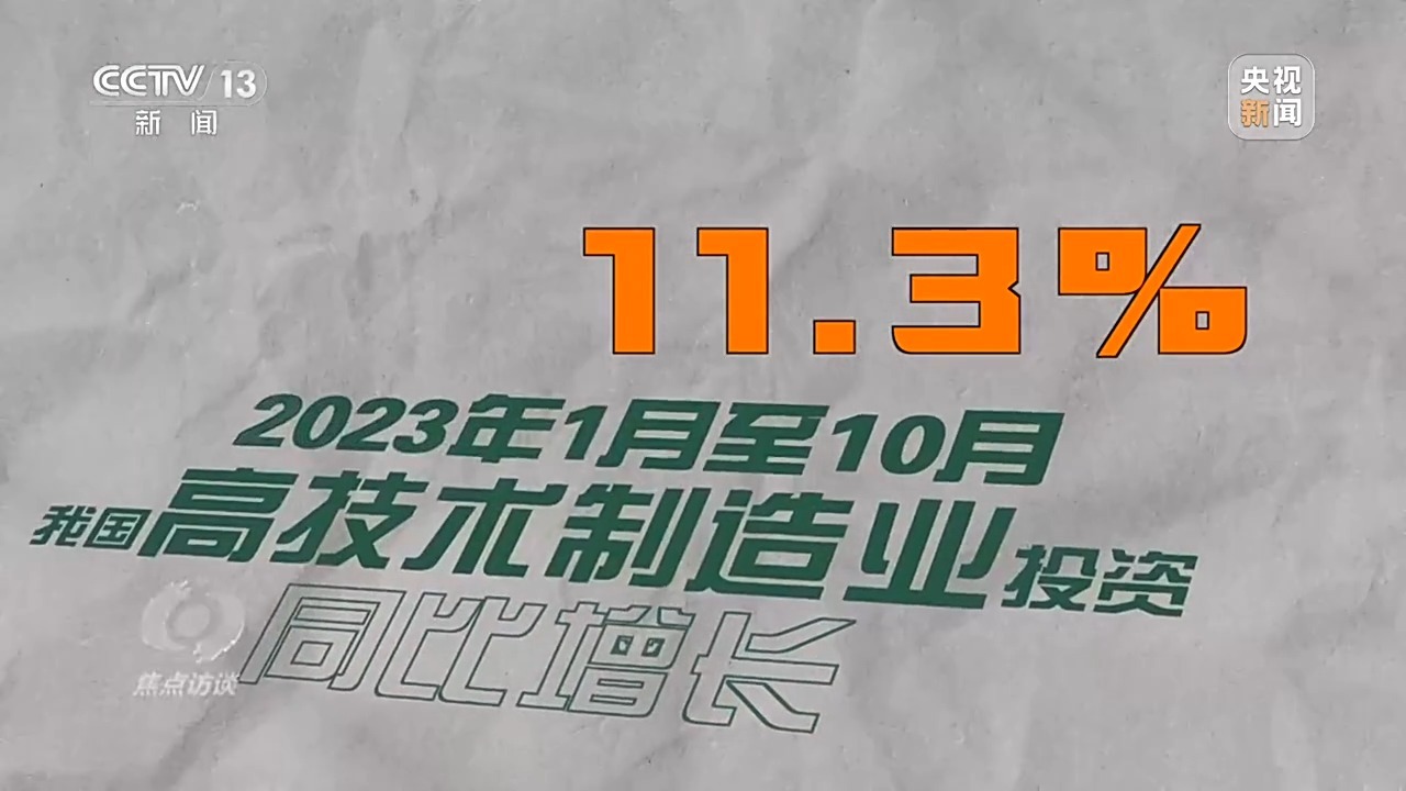 一个是:11.3%,这是今年前10个月我国高技术制造业投资的同比增长。与之相关的另一个数字是,今年前10个月,我国高技术制造业投资增速比整个制造业投资高了5.1个百分点。这意味着什么呢?
