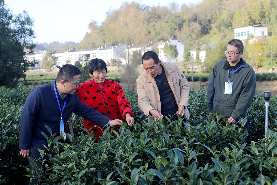 2023年,湖北省竹山县纪委监委监督检查组深入全县244个村(社区),紧盯群众急难愁盼强化监督检查。他们走遍了辖区山山水水、沟沟壑壑,用脚步丈量村情、社情、民情。图为在该县麻家渡镇,纪检监察干部向茶叶种植户了解相关政策落实情况。(湖北省十堰市竹山县纪委监委供 袁海成 摄)